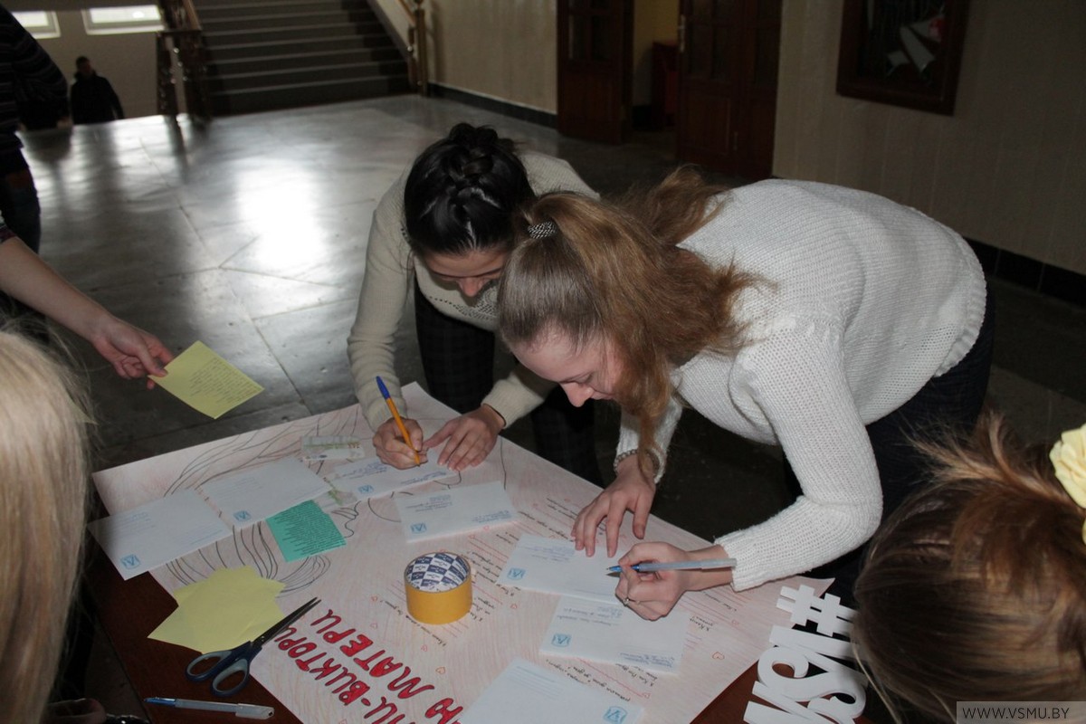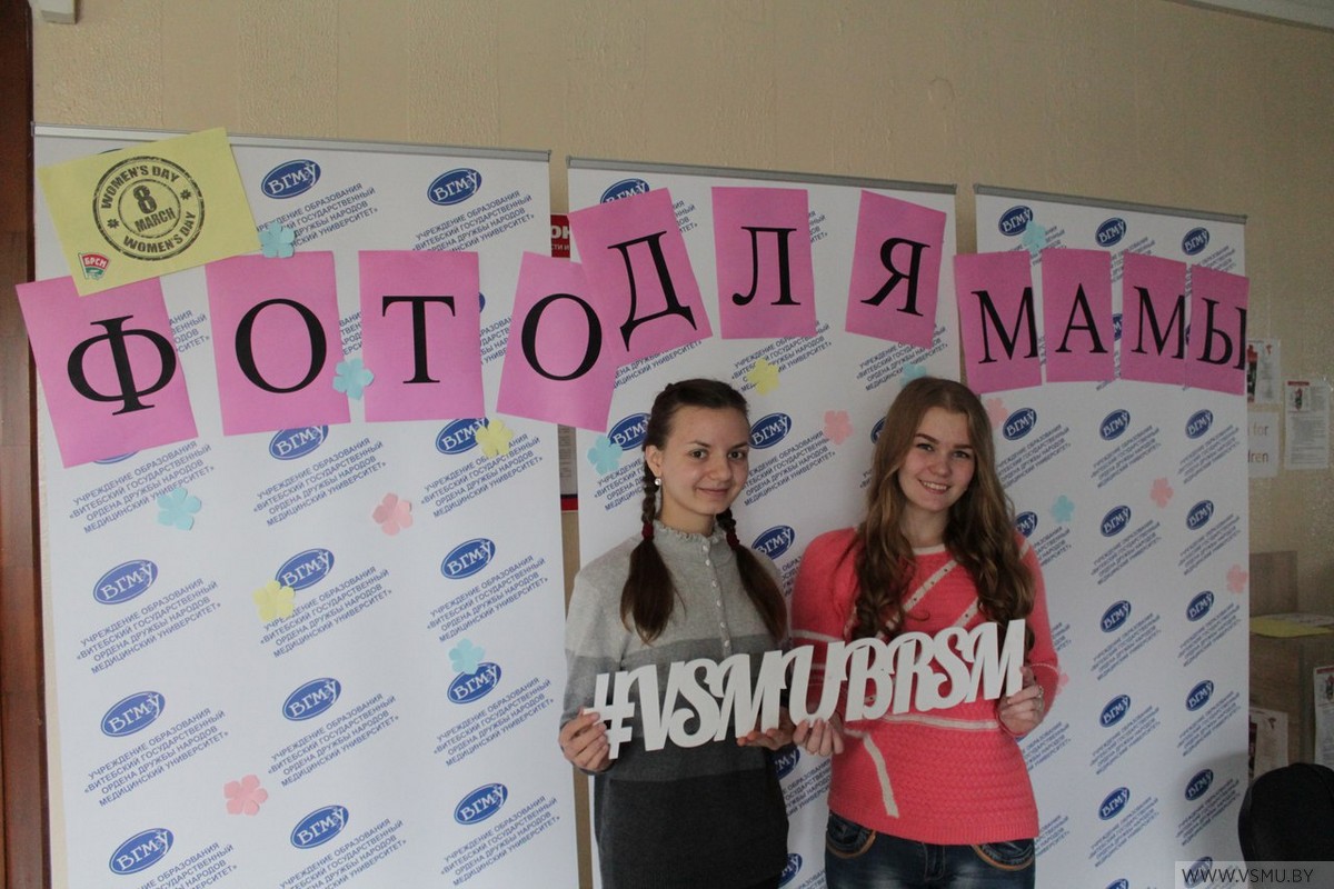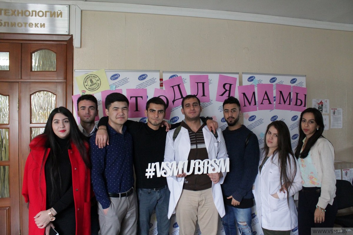 12 октября в "Витебском государственном медицинском университете" состоялась акция в преддверии Международного Дня Матери. В акции принимали участие как студенты, так и преподаватели университета. Свою маму они смогут поздравить яркими фотографиями с фотозоны и письмом по почте. Массовость акция получила благодаря иностранным студентам. Мероприятие обеспечило сближение народов, ведь на одном фото вы сможете увидеть вместе студентов из Туркменистана, Шри-Ланки, Индии и Беларуси. Участники акции проходили викторину, а в награду за верные ответы получили призы от первичной организации "БРСМ" УО "ВГМУ".
