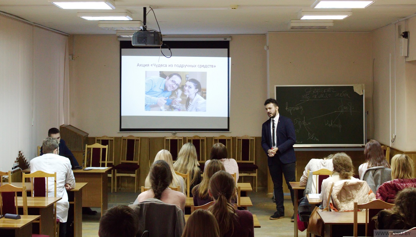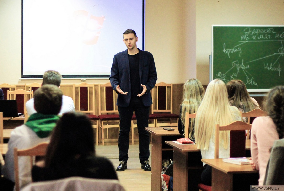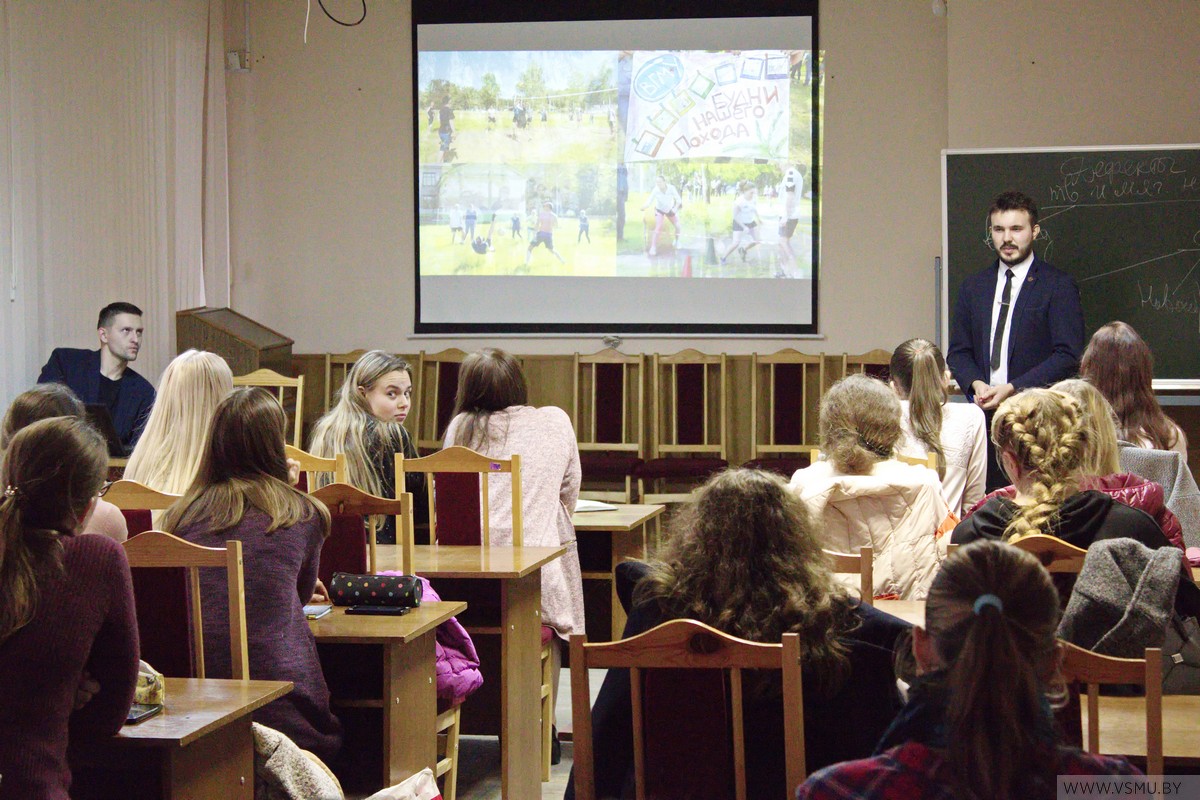 Перед студентами выступил председатель комиссии по работе с информацией и связям с общественностью профкома студентов УО «ВГМУ» Ю.А. Поддубный. Темой учебы стали такие важные вопросы, как «Структура профсоюзных органов», «Знакомство с Программой основных направлений деятельности Белорусского профессионального союза работников здравоохранения на 2015-2020 гг. (раздел VI. Работа с молодежью) и Программой практических действий Витебской областной организации Белорусского профессионального союза работников здравоохранения на 2015-2020 гг. (раздел VI. Работа с молодежью)».