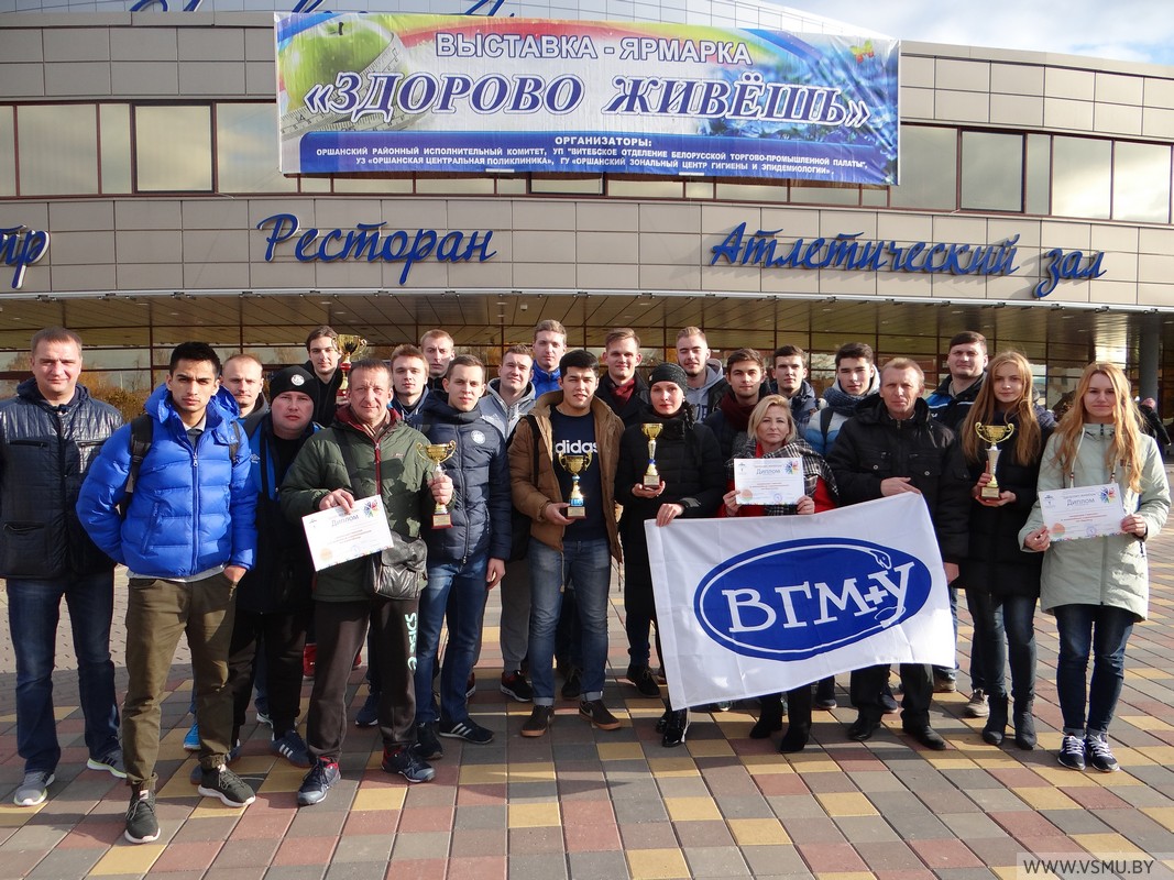 25 октября 2017 года спортивная делегация в составе студентов ВГМУ, сотрудников факультета «Здоровьесбережение» и спортивного клуба приняли участие в Международном форуме здорового образа жизни и IV Республиканской универсальной ярмарки-выставки «Здорово живешь». Команда нашего университета заняла 1 общекомандное место в общем зачете, одержав победу в соревнованиях по волейболу, бильярду, боулингу, и дартсу.