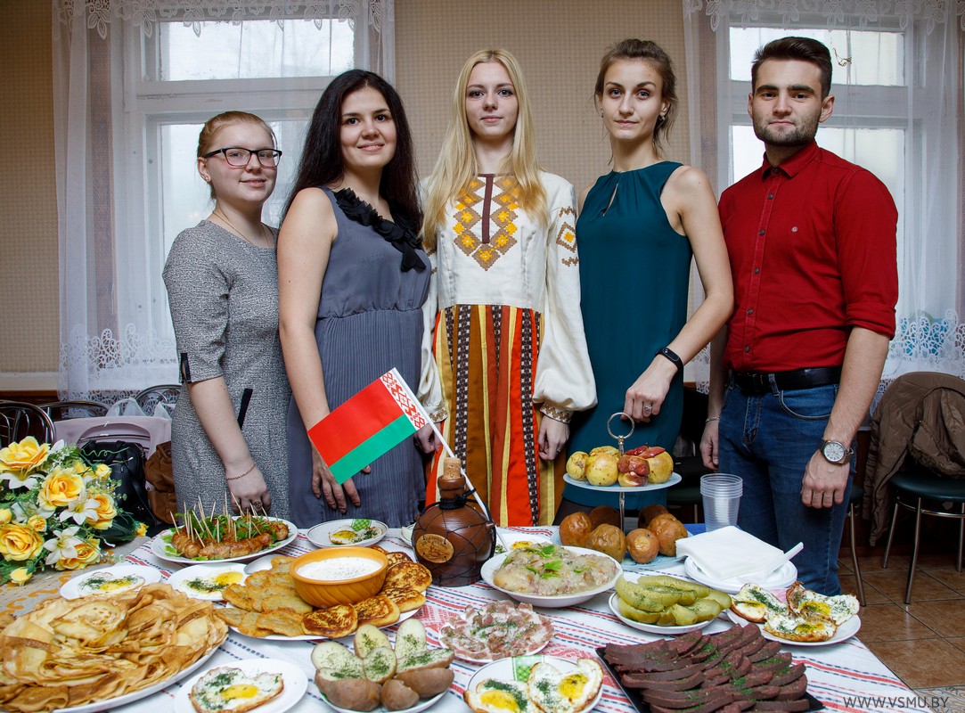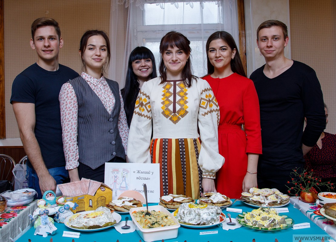 Выставка кулинарного мастерства "Кулинарная фантазия-2017" стала отправной точкой XXI международного фестиваля творчества студентов-медиков "Студенческая осень ВГМУ-2017". Такие соблазнительные запахи исходили из нашей столовой, когда участники накрывали свои столы!.. В конкурсе принимали участие команды общежитий, а также землячества Шри-Ланки, Туркменистана, Нигерии, Ливана, Ливии, Ганы и Индии. Наши кулинары должны были приготовить не только блюда традиционной белорусской кухни, но и, конечно, представить свои национальные кушанья и лакомства. В результате, среди привычных нам драников, картофельных запеканок, клецок и пирожков, можно было найти такие блюда, как кун-казум, кесари, мун-гули и многие-многие другие. К слову, за непривычными названиями иногда скрывались хорошо известные всем нам рис, курица, овощи или халва. Апофеозом выставки стала дегустация блюд участниками команд и зрителями, пришедшими на праздник. Можно было не только сытно и разнообразно поесть, но и вдоволь пообщаться, узнать рецепт понравившегося кушанья. Было вкусно, весело и интересно!