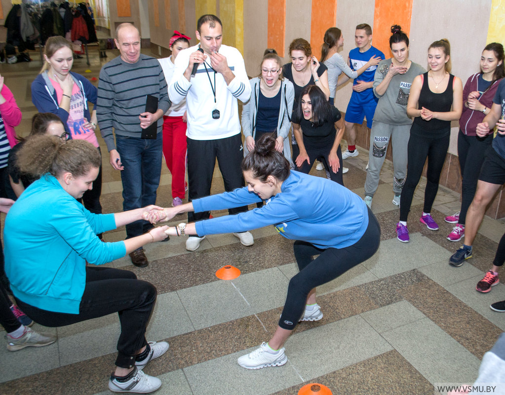 Затем стартовала еще одна спортивная игра, проходившая в форме спортландии, где студенты смогли активно отдохнуть после сложной лекции и подготовиться к дальнейшим мероприятиям.