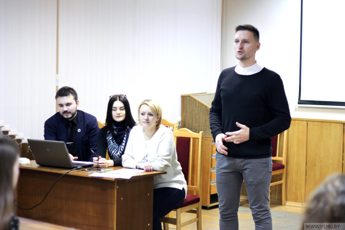 Далее слово было предоставлено председателю комиссии по работе с информацией и связям с общественностью профкома студентов УО «ВГМУ» Юрию Поддубному, который рассказал о нововведениях в информационной работе профкома студентов, в том числе о создании официального аккаунта первичной организации в социальной сети Instagram.