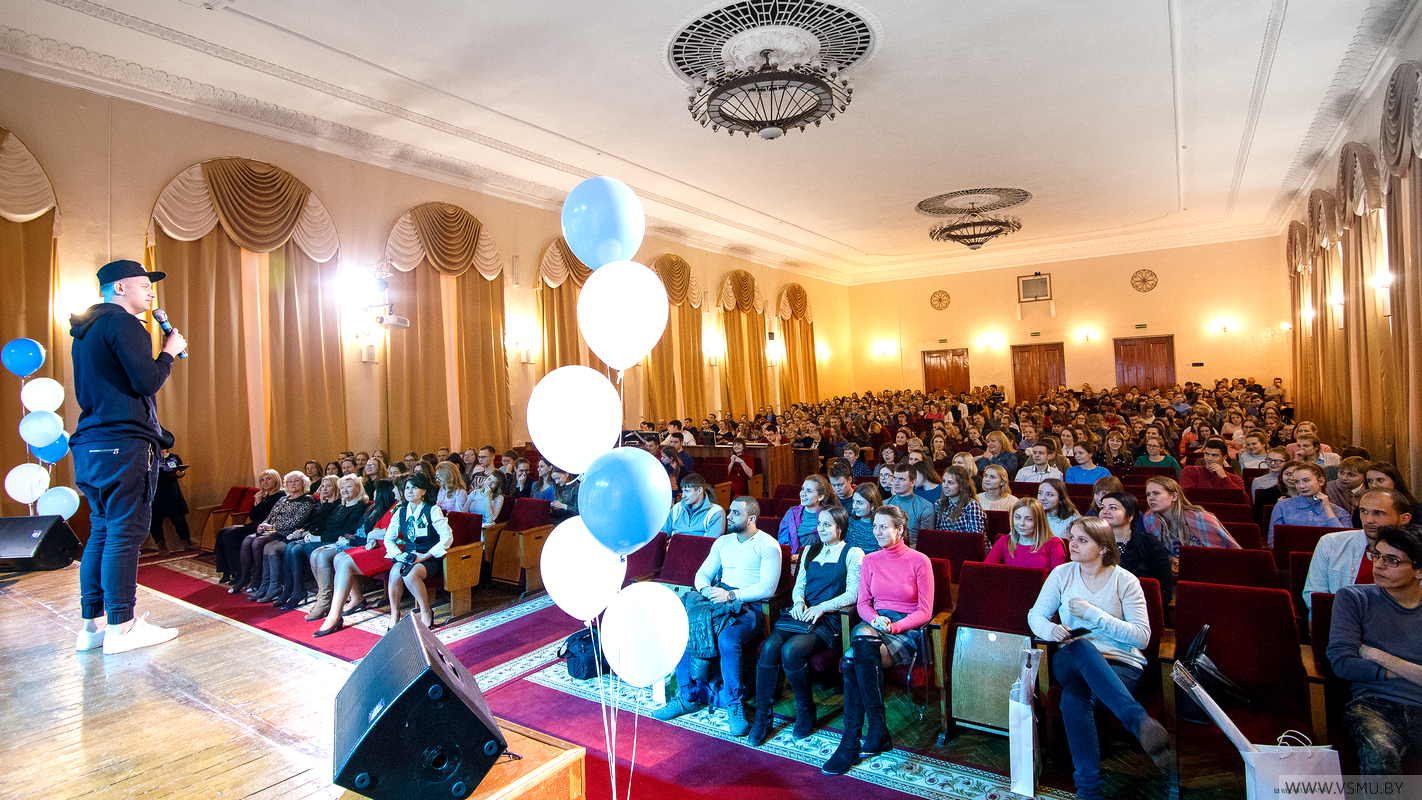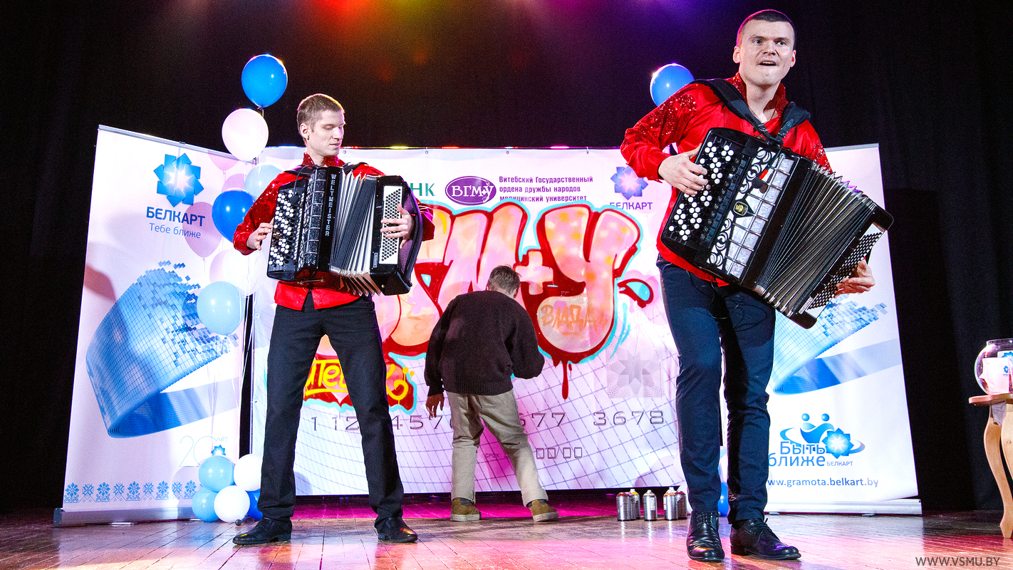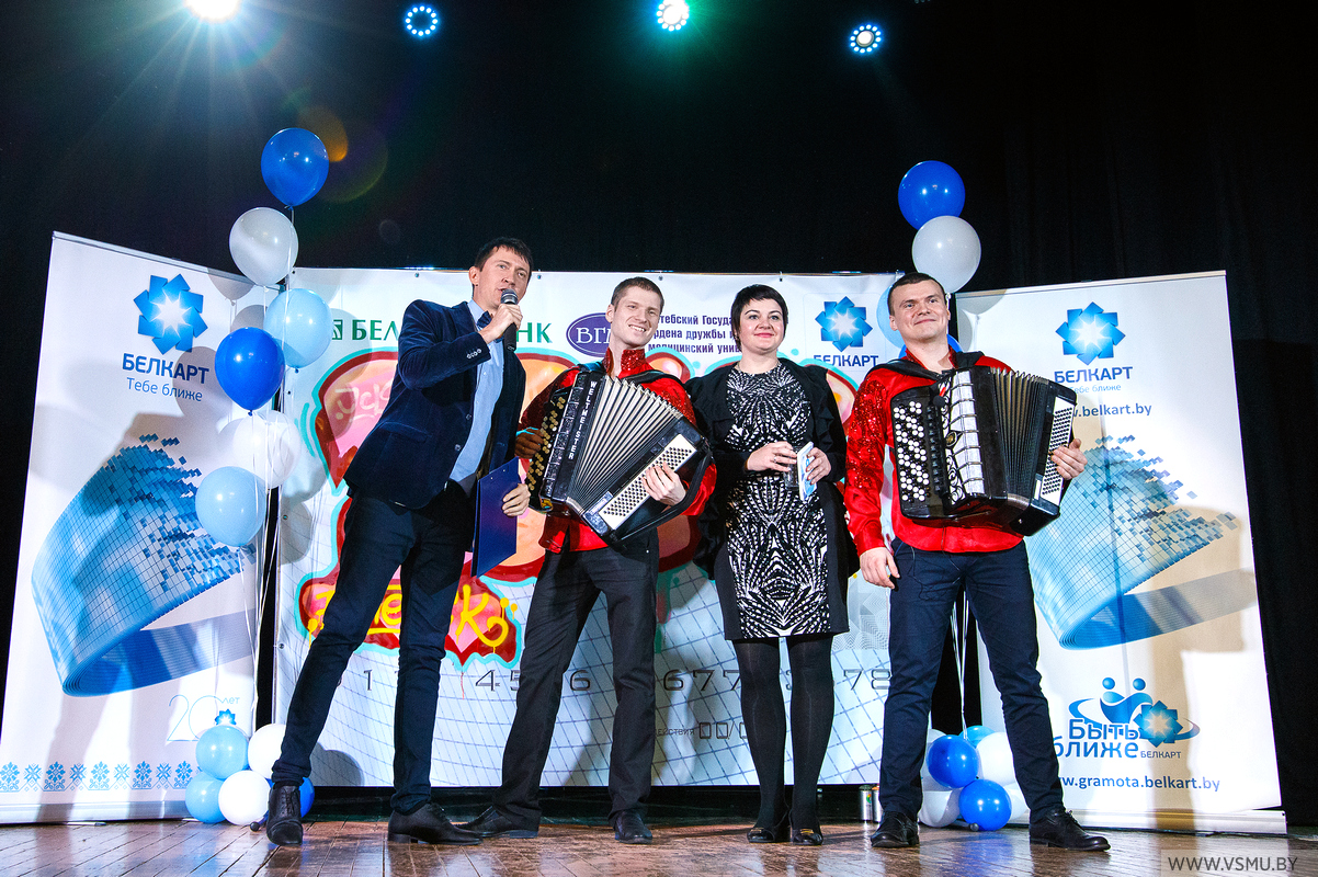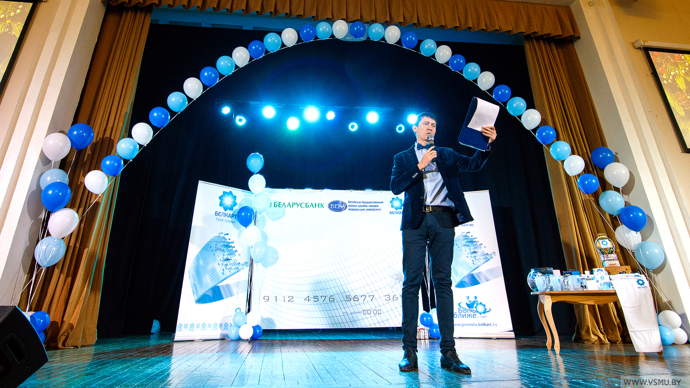 В 15.00 в актовом зале университета началось яркое музыкально-развлекательное шоу, в программе которого были: финансовая викторина, выступление певицы Влады, гигантский танцующий медведь Аэро, розыгрыш призов лотереи банка и многое-многое другое. Присутствующие узнали о преимуществах внутригосударственной системы платежей посредством карточек «Белкарт». Наиболее активные пользователи этой системы среди наших иностранных студентов получили подарки от «Беларусбанка». Было шумно, весело и познавательно.