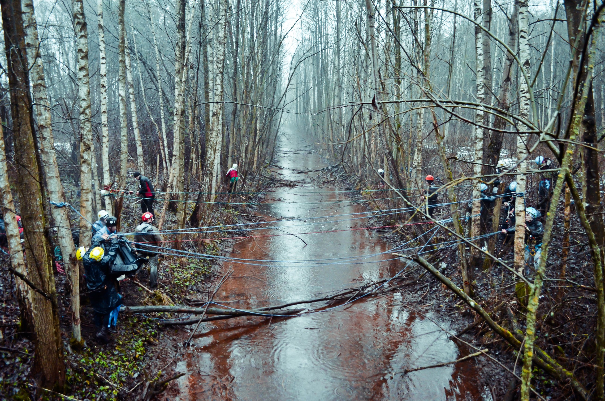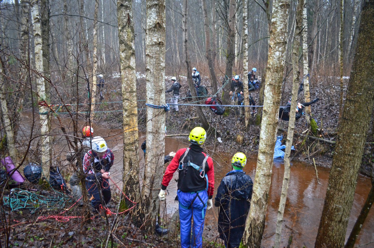 Начало второго блока. Переход по карте до первого этапа. КВ – 15 минут. Маловато. Рюкзак на плечо и побежали. А вот и он. Разминка. Три небольших задания на командную работу: налить в стакан воды из бутылки, не касаясь её, при помощи двух нитей; пройти по двум параллельно натянутым веревкам на полуметровой высоте, держась за союзника, идущего напротив тебя; три человека из команды стоят на щите, а один должен их протянуть 20 метров. Веселье. А тут ещё и дождь со снегом усложняют работу. Справились, что у нас дальше по плану? Переход. Не проблема… Был до первого падения со склона. Народ шутит, мол теперь точно соревнования начались. Ну что же, не жалуюсь, знал, куда шел.