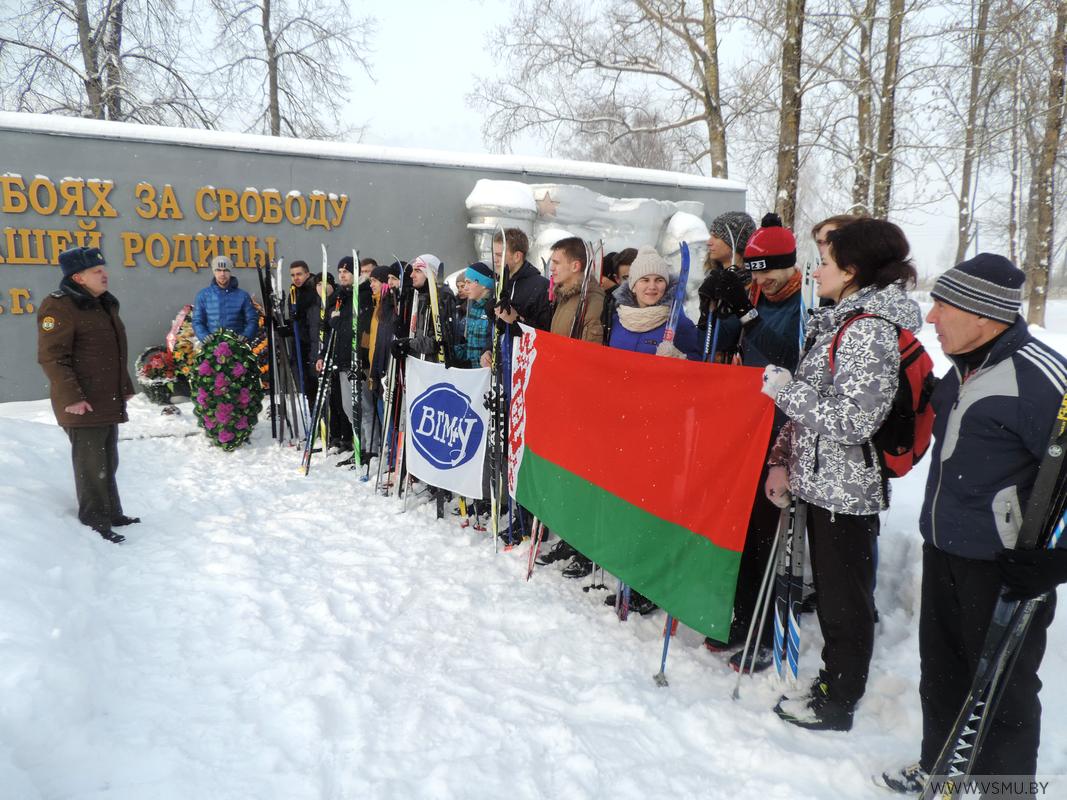 Студенты университета прошли на лыжах по местам боевой славы белорусского народа, приняли участие в митинге у воинского захоронения в д. Шапуры Витебского района, почтили память погибших в годы Великой Отечественной войны минутой молчания и возложили венок к мемориалу.