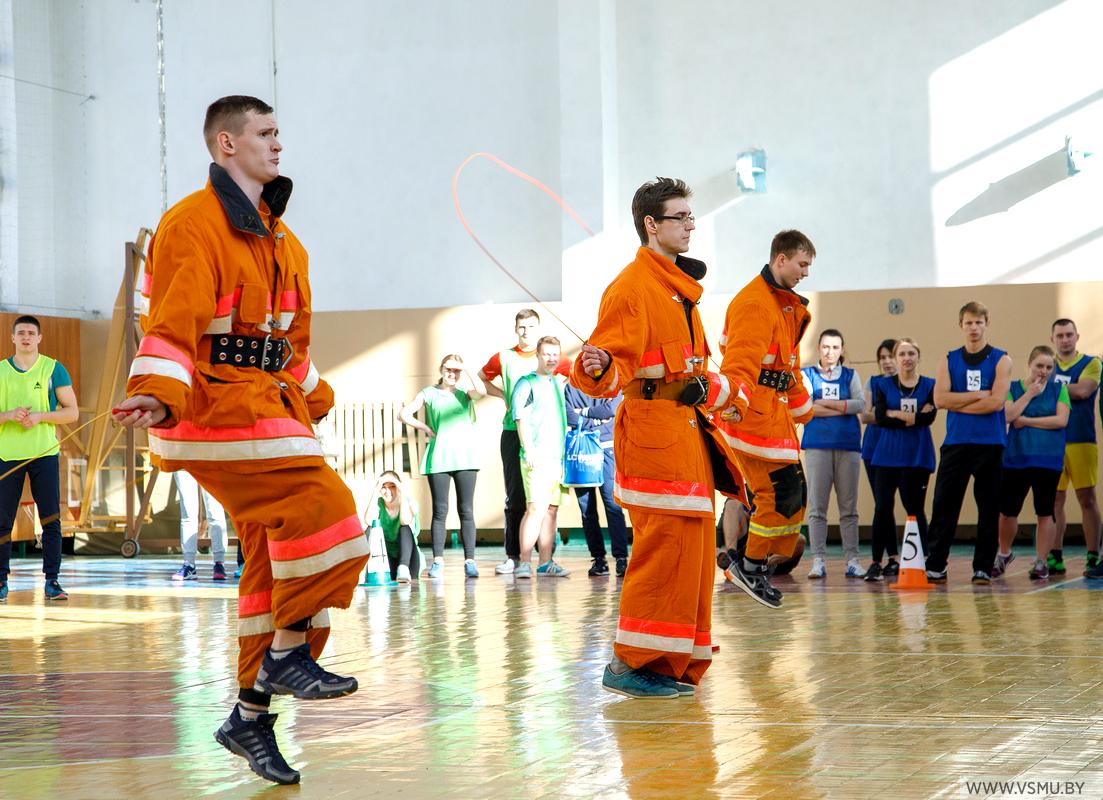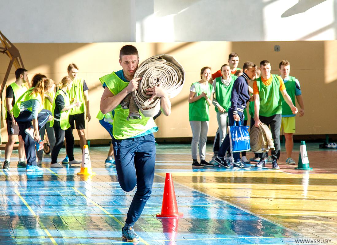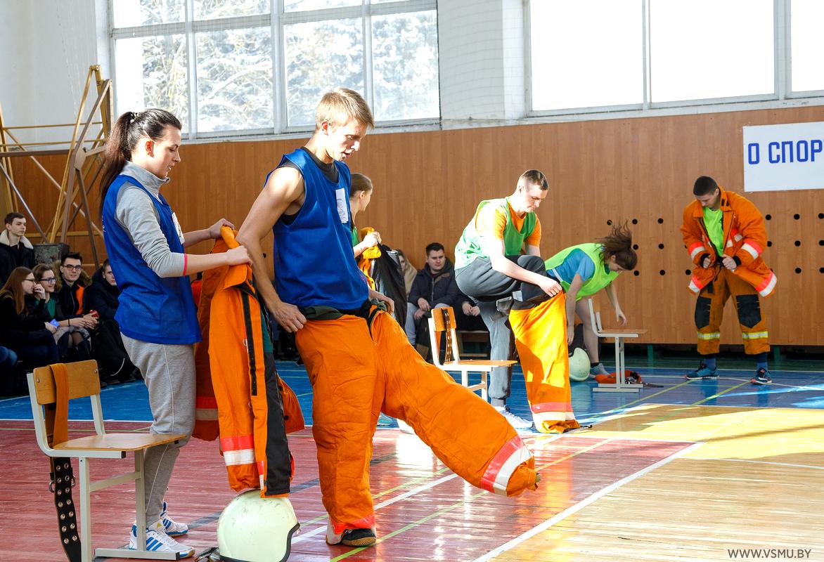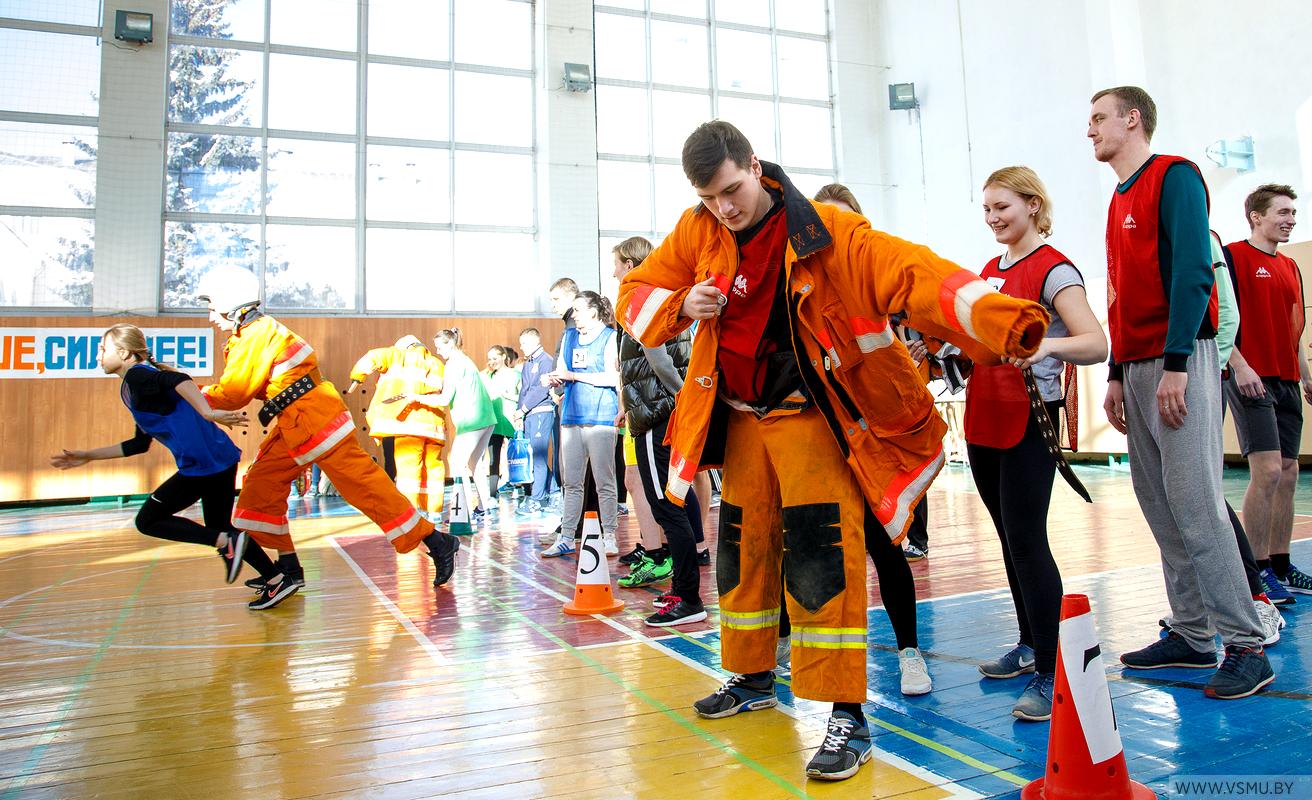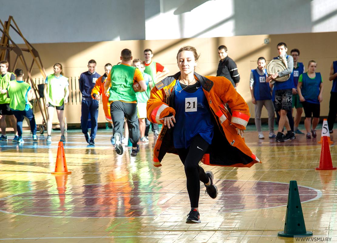 В большом спортивном зале университета спортивным клуб, кафедрой МР и ФК совместно с Витебским ГОЧС проводились соревнования с элементами пожарно-прикладного многоборья «Вызов принят!» посвященные Дню защитников Отечества и Вооруженных Сил Республики Беларусь. В соревнованиях участвовали команды добровольных пожарных дружин общежитий университета.