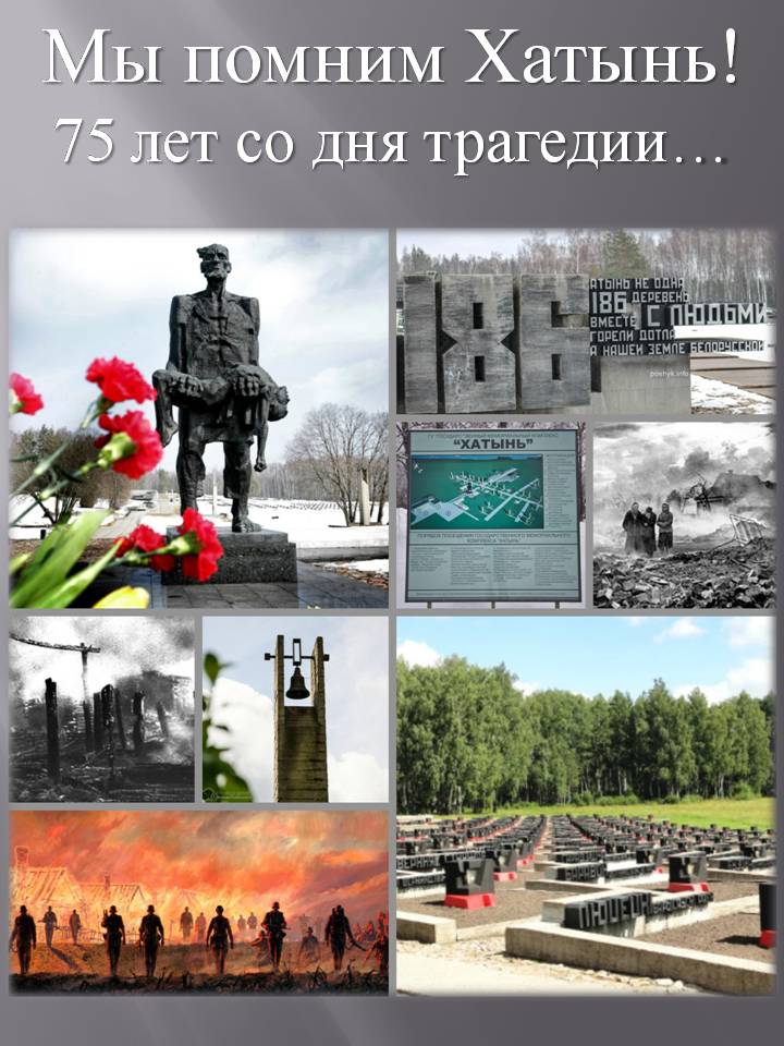 Трагедия Хатыни — один из тысяч фактов, свидетельствующих о целенаправленной политике геноцида по отношению к населению Белоруссии, которую осуществляли нацисты на протяжении всего периода оккупации. Сотни подобных трагедий произошли за три года оккупации (1941-1944гг) на белорусской земле.