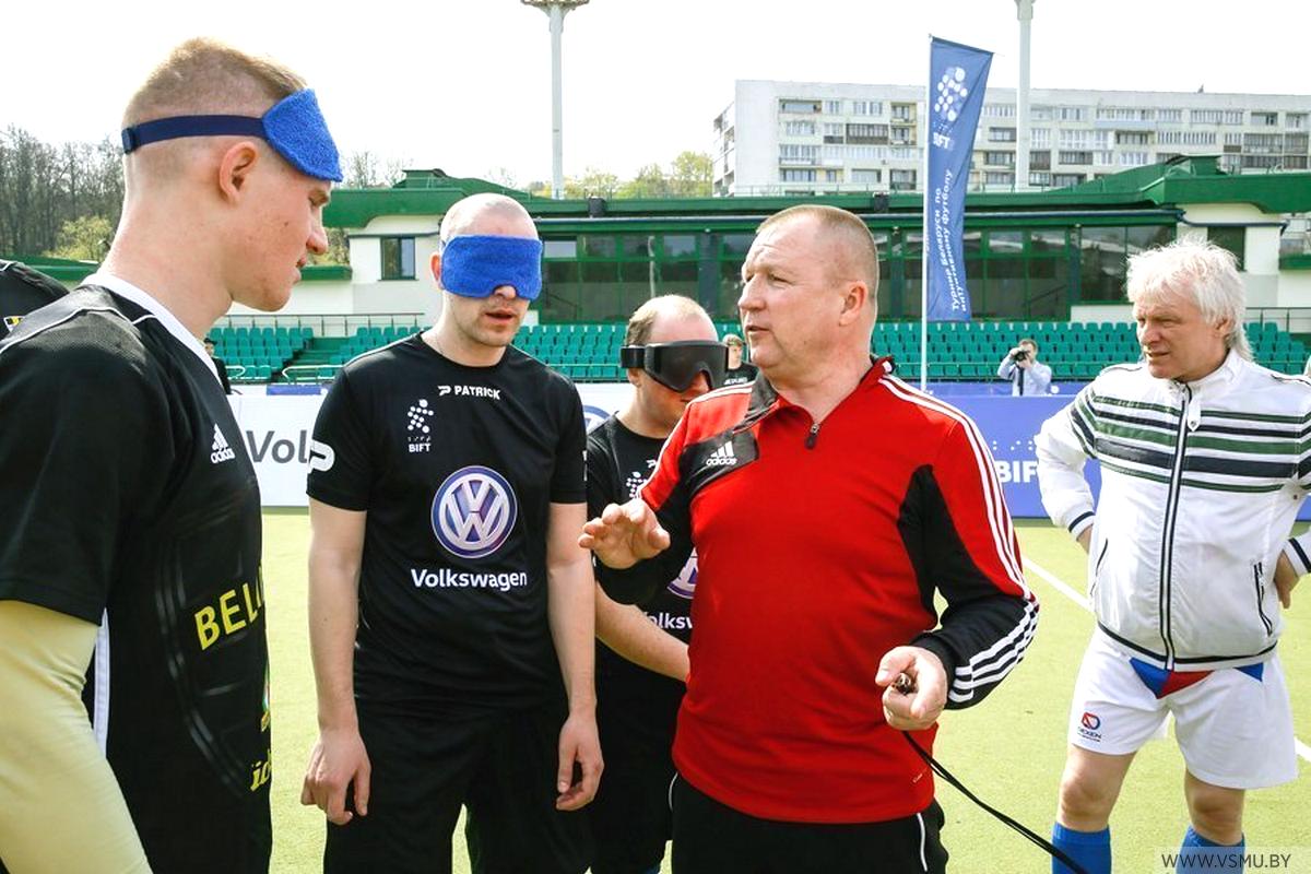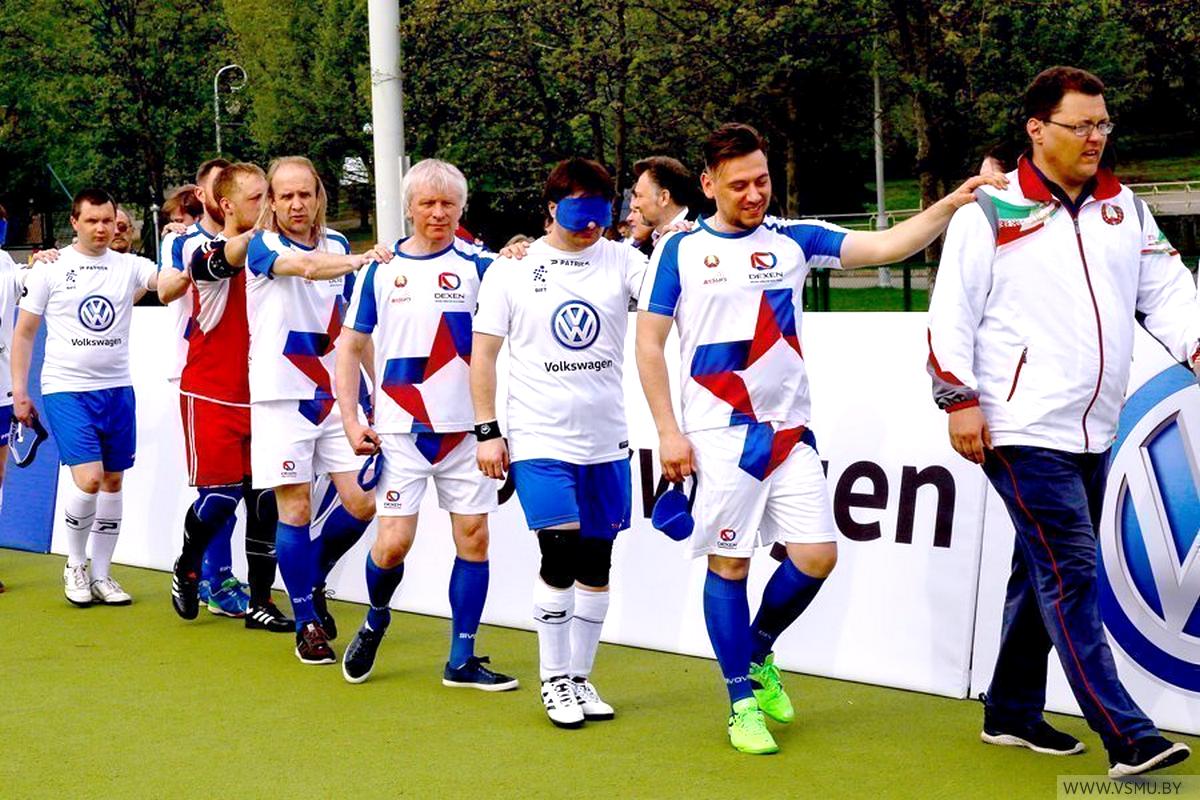 Делегация ВГМУ была представлена участниками: тренер Республиканского центра олимпийской подготовки по паралимпийским и дефлимпийским видам спорта, главный тренер Национальной сборной по футболу среди незрячих, педагог – организатор ВГМУ Олег Константинович Кириллов; преподаватель кафедры медицинской реабилитации и физической культуры Вячеслав Владимирович Белей, судья матча; председатель Совета волонтеров университета, студентка 6 курса лечебного факультета Светлана Наджафова.