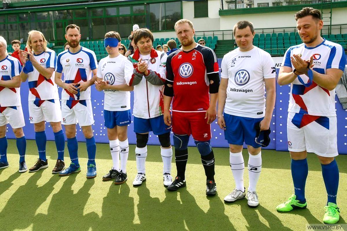 Уникальный футбольный матч собрал на одном поле сразу 4 команды: сборная Витебской области среди незрячих футболистов вместе с ФК «Шахтер» играли против сборной команды Республики Беларусь среди незрячих футболистов и ФК звезд белорусской эстрады «Арт-Старс».