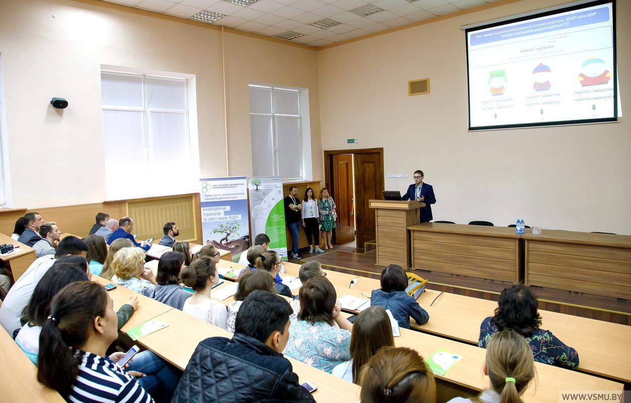 Среди спикеров конференции были: председатель Совета молодых ученых Института генетики и цитологии НАН Беларуси Максим Родькин, руководитель лаборатории цитологии компании BIOCAD Павел Гершович (Санкт-Петербург), заведующий кафедрой общей химии БГМУ кандидат биологических наук, доцент Владислав Хрусталев, профессор кафедры инфекционных болезней ВГМУ Иван Жильцов, председатель совета директоров СООО "Нативита" Алексей Сычев.