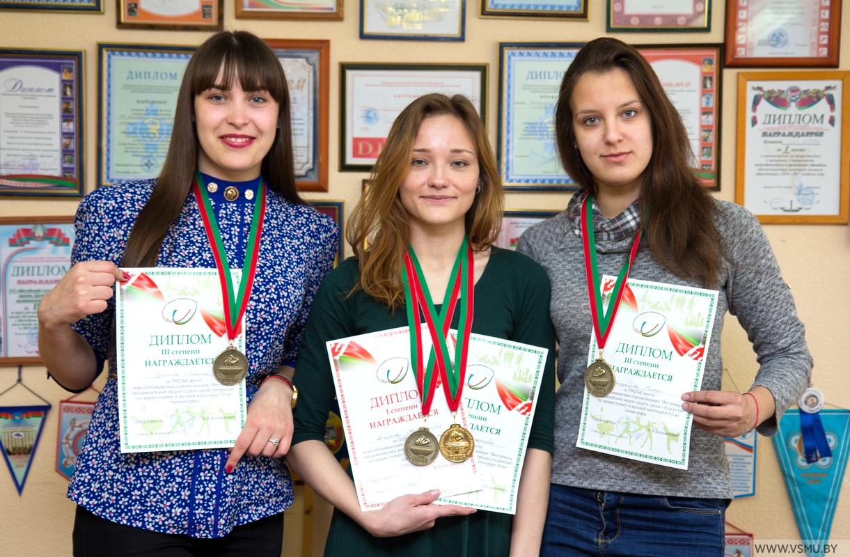 Слагаемым столь высокого результата стало успешное выступление команд университета по видам спорта. Команды по шахматам (тренер А.Г. Аксенцов), армрестлингу (Л.Б. Петровский, В.А. Лаппо). женскому волейболу (В.В. Краско), женскому баскетболу (О.А. Нехайчик) заняли первые места; мужской баскетбол (В.В.Сазоник), женский мини-футбол (К.И. Стахнев), гиревой спорт (А.В. Тур), нстольный теннис (А.С. Минин) - вторые места; мужской волейбол (С.Л.Сороко), лыжные гонки (В.А. Маслак), мужской мини-футбол (П.С. Потоцкий) – третьи места.