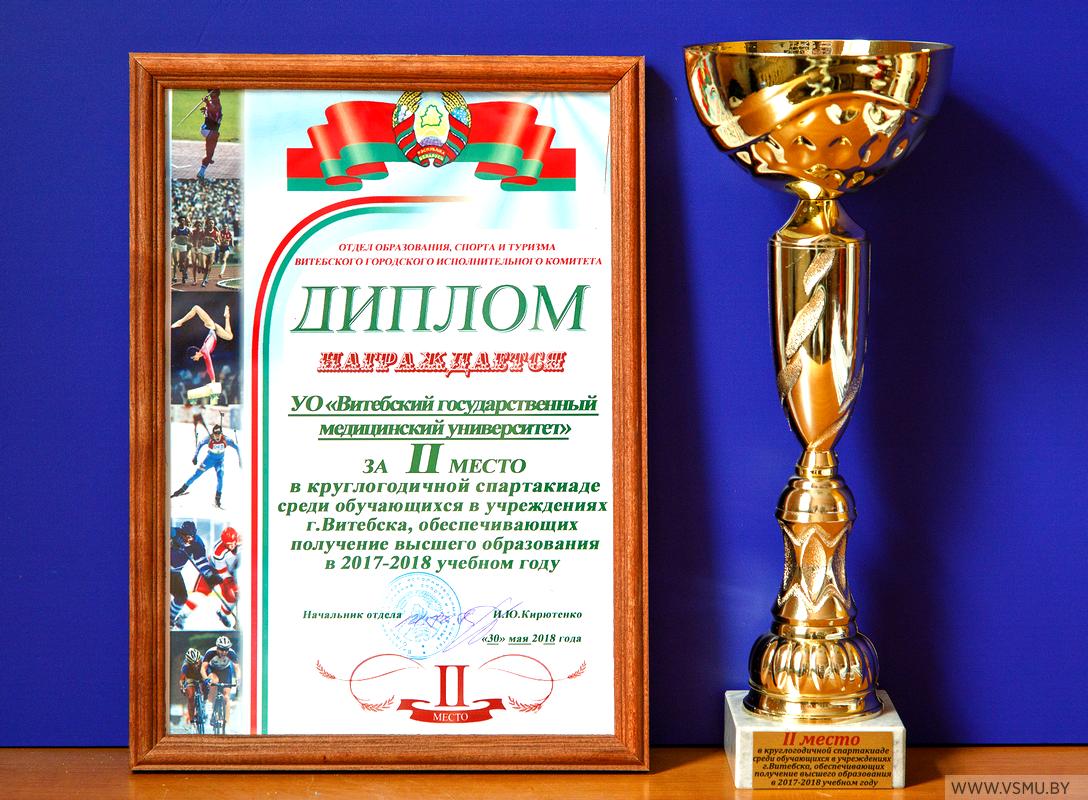 В этом учебном году наш университет впервые завоевал 2-е общекомандное место в Спартакиаде вузов г. Витебска, опередив ВГУ им. П.М. Машерова с факультетом физвоспитания, ВГАВМ и МИТСО.