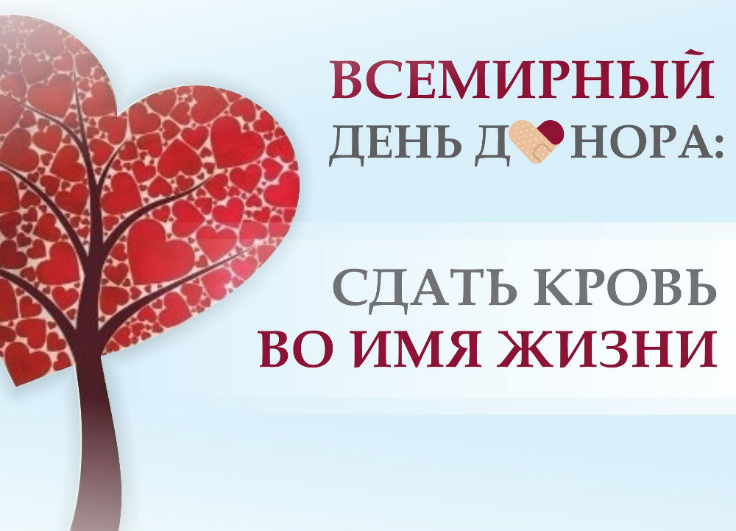 Ежегодно 14 июня страны всего мира отмечают Всемирный день донора крови. Это событие служит поводом для привлечения внимания общественности к вопросу о потребностях человечества в безопасной крови, ее продуктах и выражения благодарности донорам крови за то, что они, сдавая кровь, помогают спасать жизни людей.