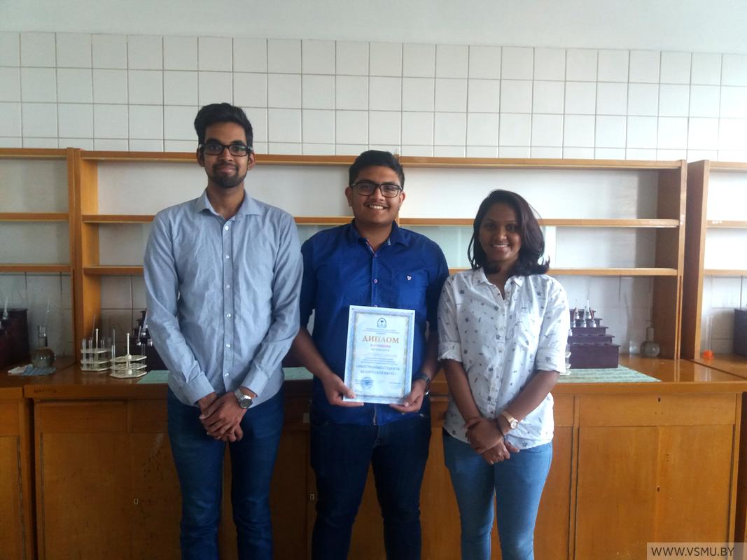 Иностранные и отечественные студенты научного кружка кафедры общей, физической и коллоидной химии в 2018 году приняли активное участие в работе научных конференций студентов и молодых ученых в Республике Беларусь и за рубежом. Так, в работе III Международной научно-практической конференции иностранных студентов и магистрантов «Иностранные студенты – белорусской науке», которая проходила на базе УО «Витебская ордена «Знак Почета» государственная академия ветеринарной медицины» приняли участие студенты второго курса факультета подготовки иностранных граждан (специальность «Лечебное дело») Назван Мохамед, Кетми Наводья и Джоэль Альберт. Они выступили с докладом «Аyurvedic medicinal plants of Sri Lanka» (научный руководитель: профессор З.С. Кунцевич).