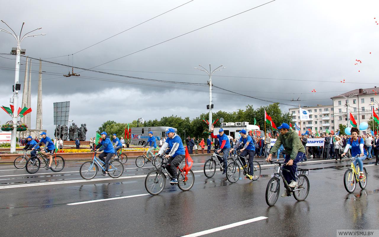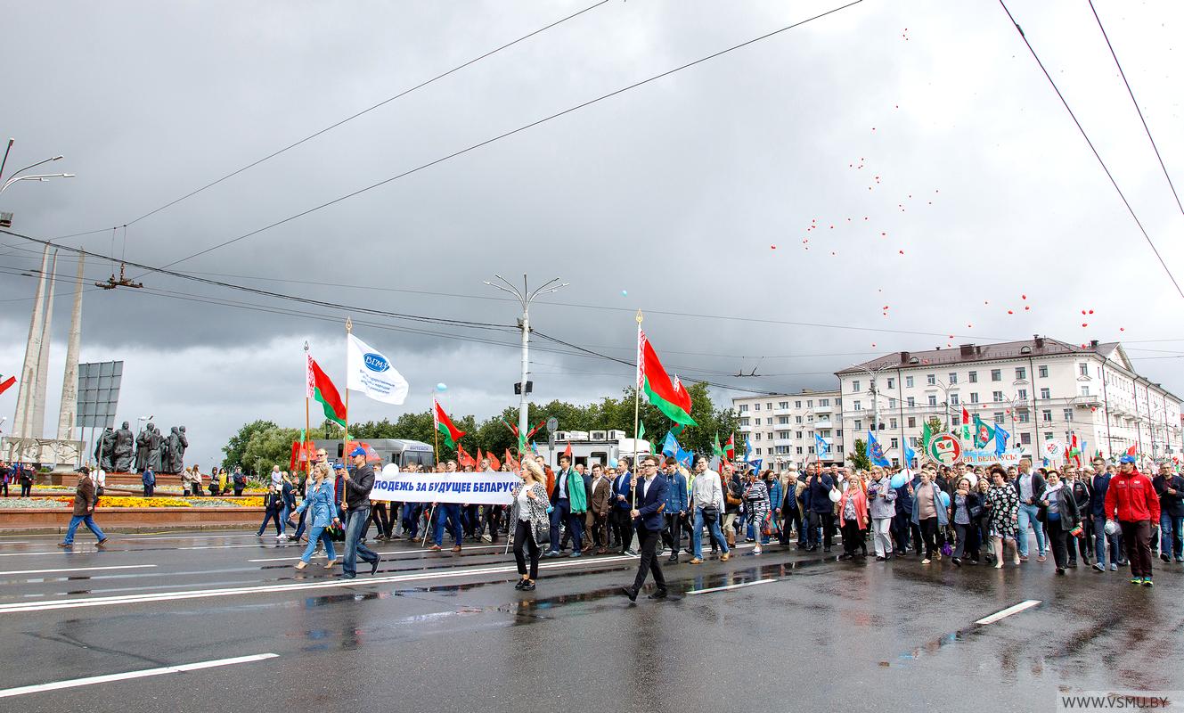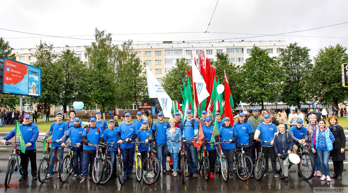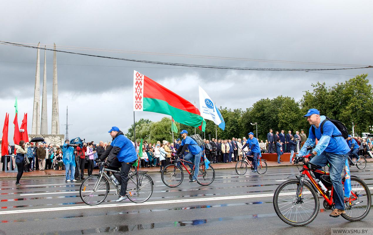 3 июля в День Независимости нашей страны студенты и сотрудники университета приняли участие в праздничном шествии по улице Ленина и площади Победы. Впереди двигался строй велосипедистов с государственным флагом Республики Беларусь и флагом ВГМУ, затем шла колонна сотрудников и студентов ВГМУ с праздничным транспарантом, флагами и разноцветными шарами. При прохождении через площадь эти шары взмыли в небо. Несмотря на дождливую погоду, атмосфера вокруг царила праздничная.