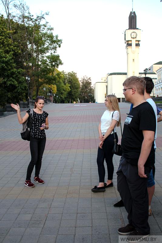 За первые недели учебы первокурсники уже вскользь познакомились с Витебском, однако, далеко не все успели изучить историю и традиции города и университета. Именно поэтому организаторы решили начать экскурсию с основных фактов о вузе. Они рассказали студентам-первокурсникам об основных направлениях деятельности нашего университета, традициях, основных исторических этапах и достижениях вуза. Экскурсия продолжалась по территории университета, где студенты отметили впечатляющие современные архитектурные решения. Особое внимание уделили одному из самых примечательных символов альма-матер - фонтану с величественно восседающей на его вершине скульптурой богини Гигеи, которая в греческой мифологии считается покровительницей здоровья.