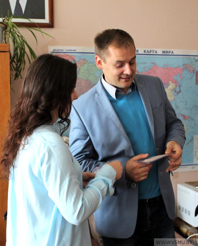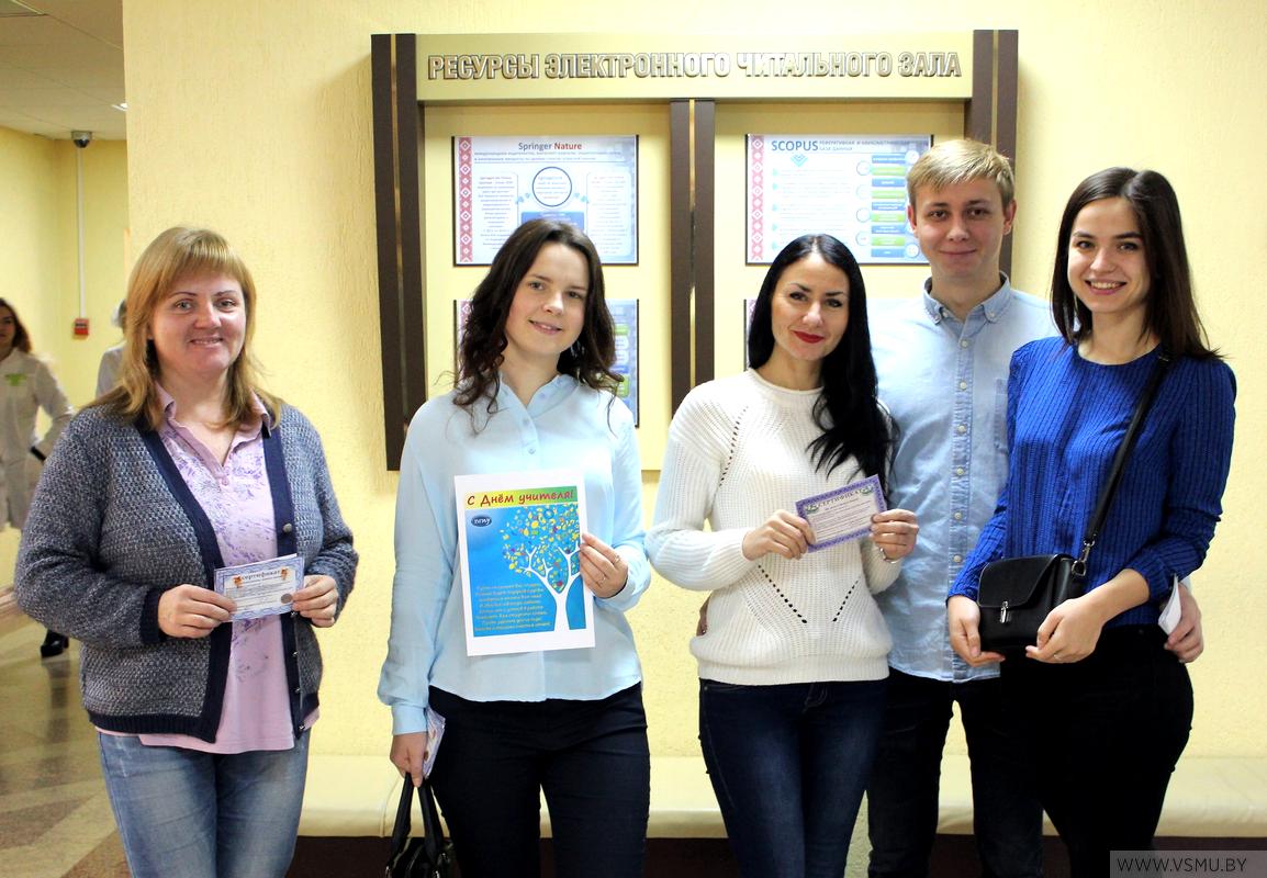 В этот предпраздничный день весь университет был засыпан улыбками преподавателей! Студенты из числа профсоюзных активистов проводили акцию, в ходе которой поздравляли преподавателей ВГМУ и вручали им поздравительные открытки. Вскоре к ребятам начали присоединяться и другие студенты, желающие поздравить своего любимого педагога! Искренние слова благодарности и пожелания активистов, улыбки и приятное удивление преподавателей создавали поистине праздничную атмосферу! Каждый год студенты нашего вуза придумывают все новые способы удивить своих преподавателей и этот год не стал исключением. В этот раз одним из подарков были шуточные сертификаты на исполнение мечты, на 1 миллион свободных минут и дом в Монте Карло. Как и ожидалось, преподаватели высоко оценили юмор и поздравления ребят!
