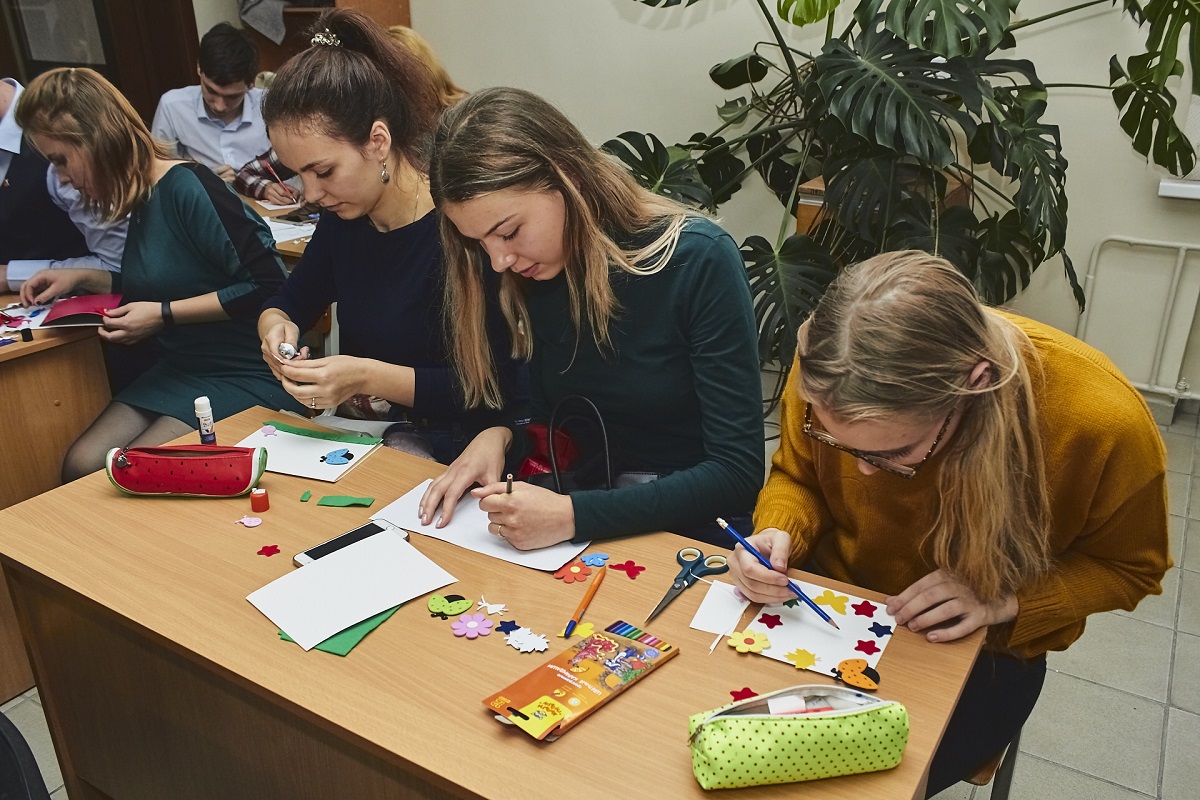 После торжественной части мероприятия студентам была предоставлена возможность сделать для своих мам поздравительную открытку своими руками, а иногородние студенты получили возможность отправить открытки в почтовых конвертах своим мамам.