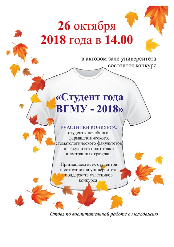 26 октября 2018 года в 1400 в актовом зале университета состоится конкурс.