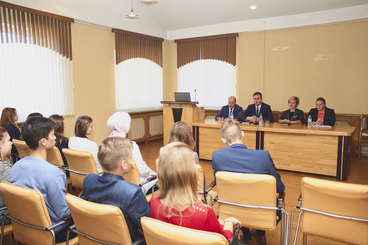 18 октября 2018 года в конференц-зале морфологического корпуса состоялась долгожданная встреча второго секретаря общественного объединения "БРСМ", Дикуна Олега Владимировича и активистов первичной организации нашего университета. Также на встрече присутствовали: проректор по воспитательной и идеологической работе УО «ВГМУ» Сыродоева Ольга Аркадьевна, первый секретарь ОК ОО «БРСМ» Хрол Вячеслав Васильевич и первый секретарь ГК ОО «БРСМ» Красакова Татьяна Владимировна. Визит был нацелен на знакомство студентов с новыми проектами ОО " БРСМ",которые будут реализованы в ближайшем будущем. Гости также ответили на вопросы активистов и выслушали предложения по усовершенствованию работы организации. И пусть времени было совсем немного, встреча прошла очень интересно и познавательно. Были рассмотрены вопросы о студенческих отрядах, II Европейских играх 2019 года и новом молодёжном билете.