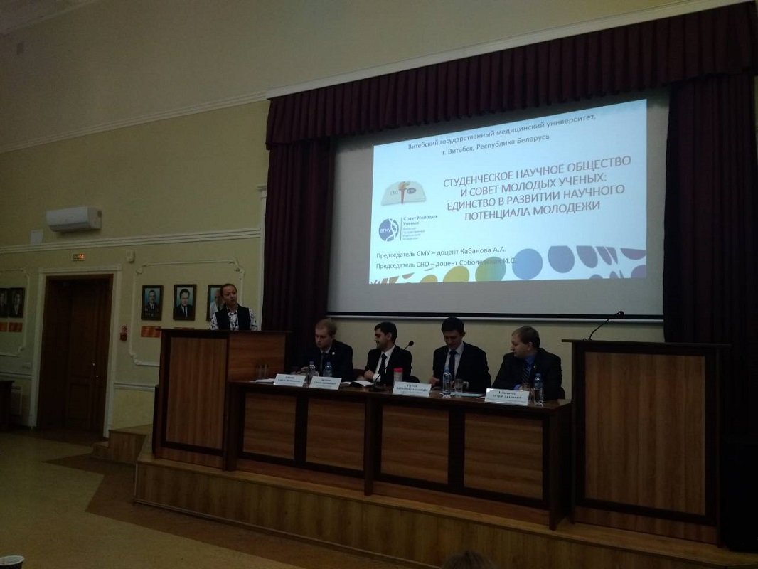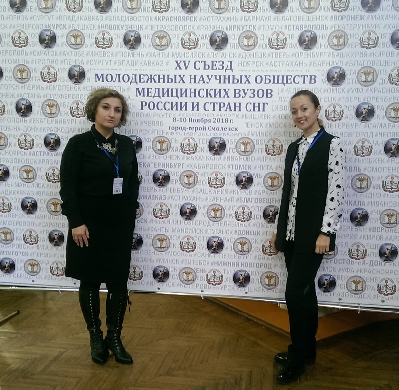 Председатель Студенческого научного общества ВГМУ доцент И.С. Соболевская и председатель Совета молодых ученых ВГМУ доцент А.А. Кабанова приняли участие в XV съезде молодежных научных обществ медицинских и фармацевтических ВУЗов России и стран СНГ, который прошел на базе Смоленского государственного медицинского университета 8-10 ноября 2018 года.