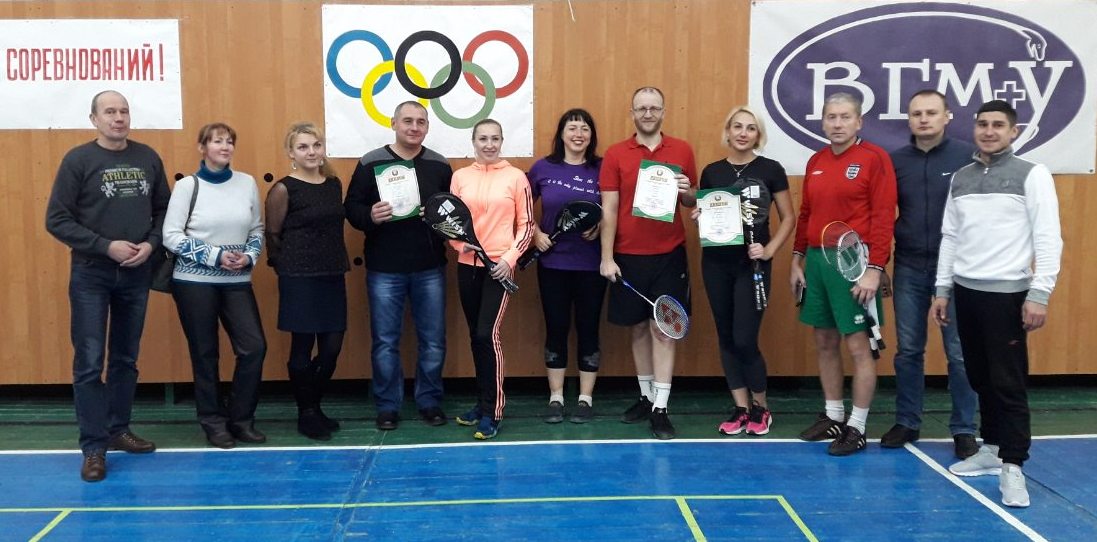 Спортивным клубом и кафедрой медицинской реабилитации и физической культуры 28 и 29 ноября 2018 года в большом спортивном зале университета проводились соревнования по бадминтону среди преподавателей и сотрудников учреждений высшего и среднего специального образования Октябрьского района г. Витебска.