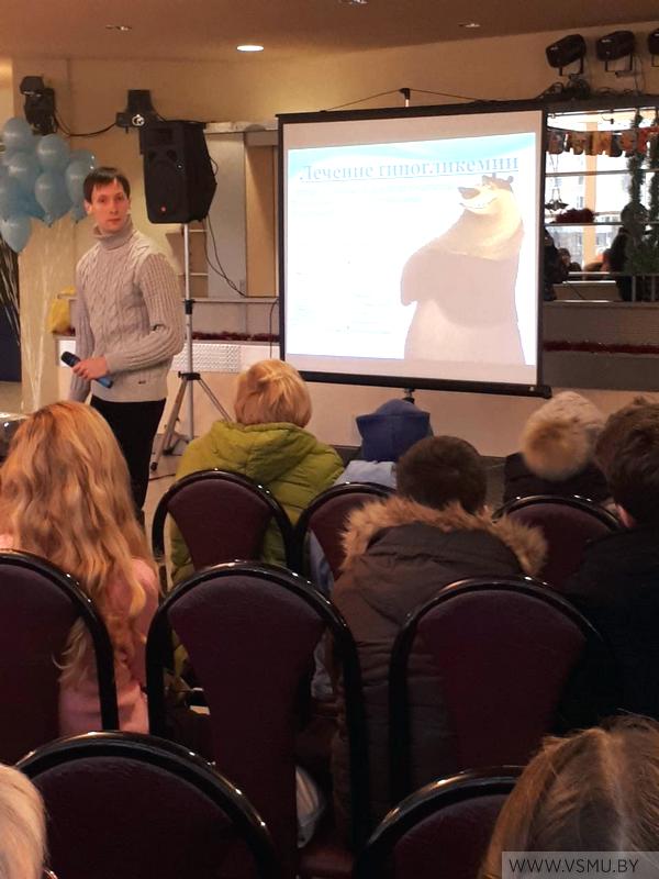 С лекциями и информационными сообщениями в мероприятии приняли участие представители социальной сферы и практического здравоохранения: Горлина И.В. – главный внештатный детский эндокринолог по Витебской области, Негурко М.В. – врач-эндокринолог Витебской областной клинической больницы, Емельянова В.В. – врач-интерн ВОКБ, Гончаров Д.Л. – врач-терапевт Витебской городской больницы № 1.