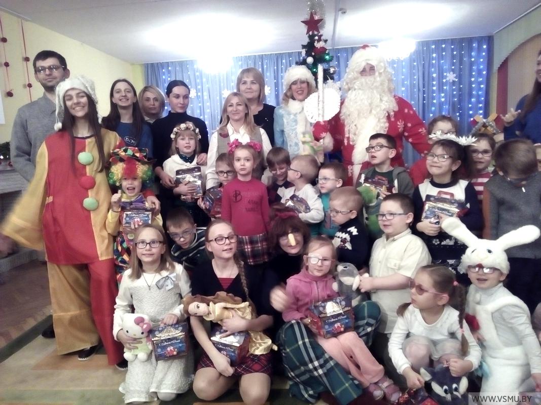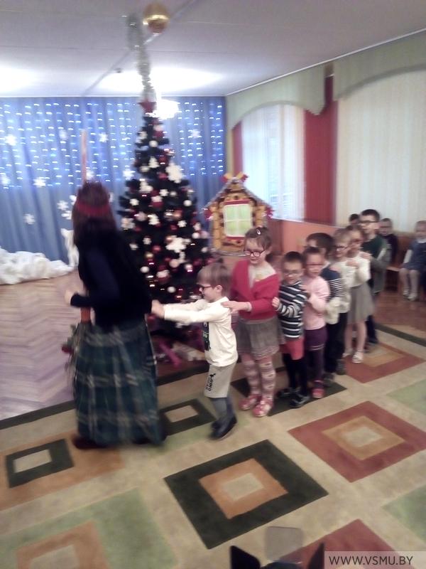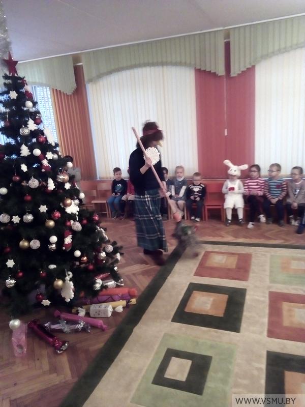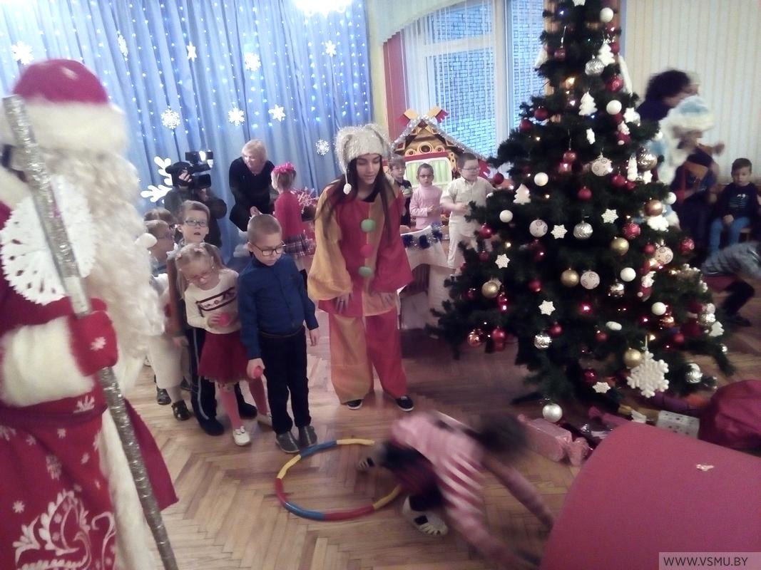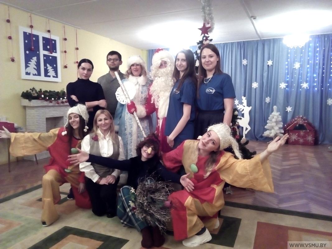В роли деда мороза, снегурочки, бабы яги и других сказочных персонажей выступили сотрудники кафедры медицинской реабилитации и физической культуры УО «ВГМУ» и волонтёры УО «ВГМУ». Всем участникам данного новогоднего мероприятия были вручены празднечные подарки.