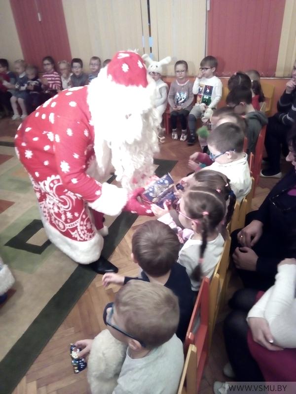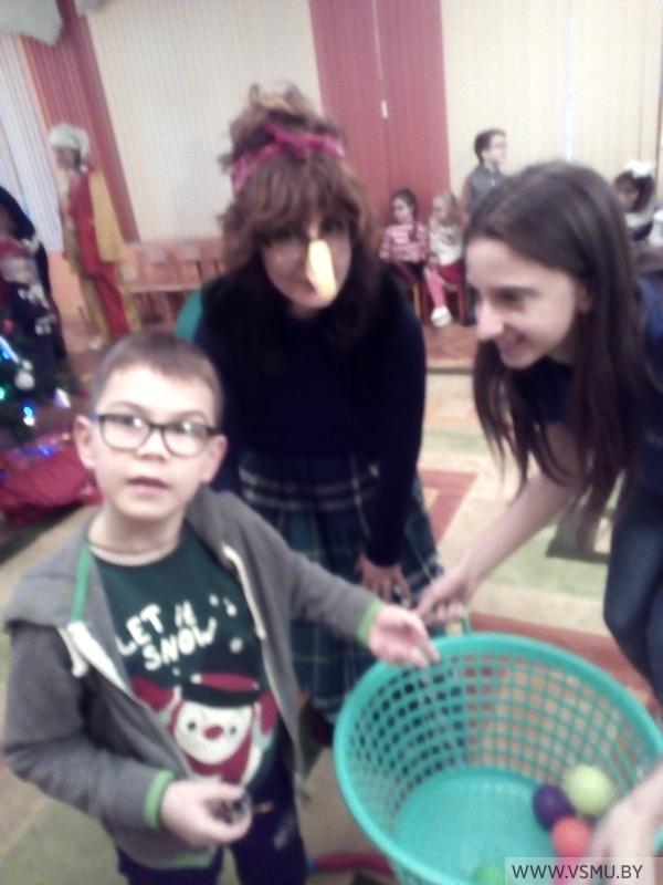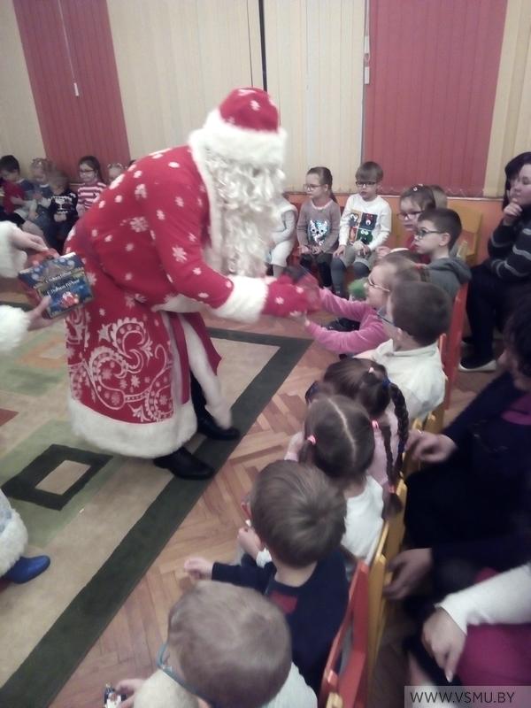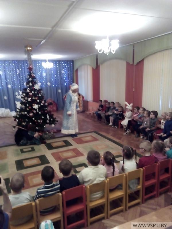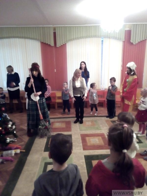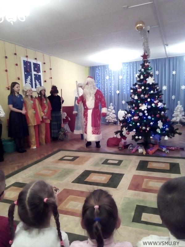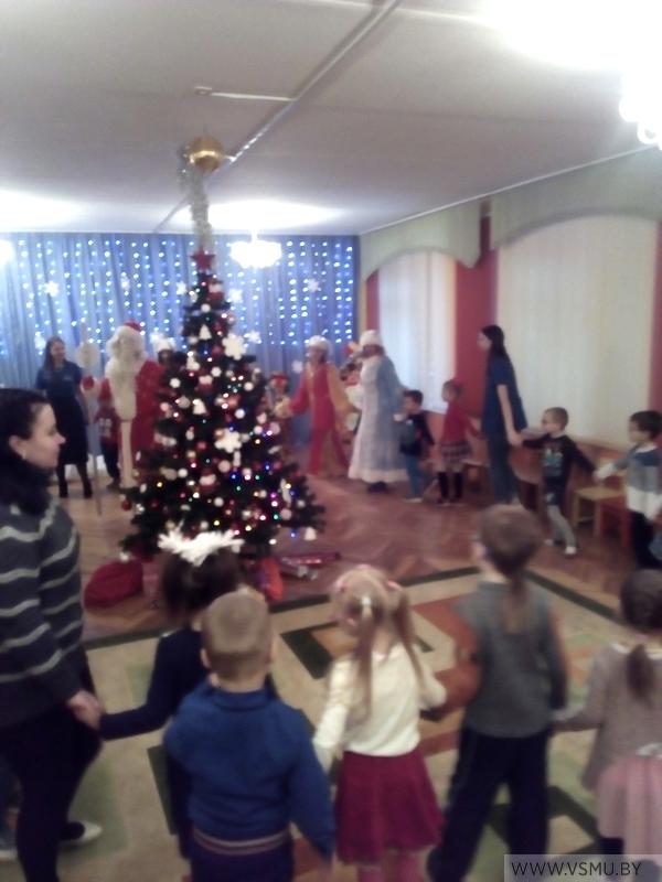 В роли деда мороза, снегурочки, бабы яги и других сказочных персонажей выступили сотрудники кафедры медицинской реабилитации и физической культуры УО «ВГМУ» и волонтёры УО «ВГМУ». Всем участникам данного новогоднего мероприятия были вручены празднечные подарки.