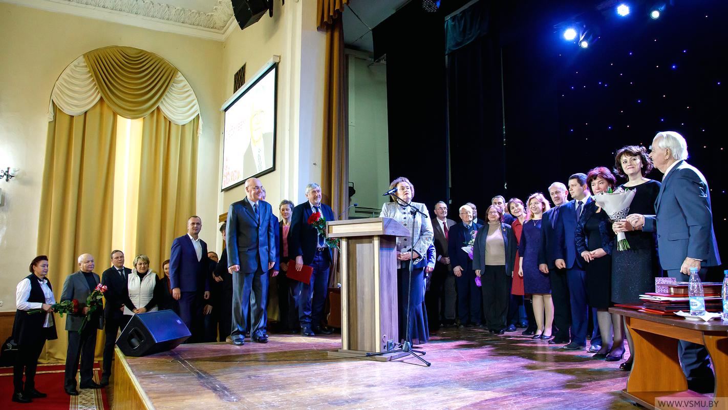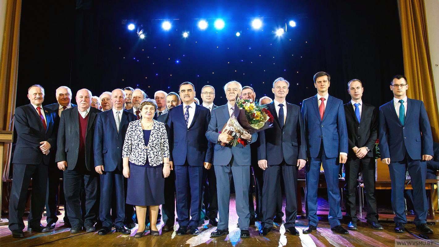 Поздравить юбиляра прибыли почетные гости, друзья, ученики, сотрудники университета, студенты. В числе почетных гостей присутствовали помощник Президента Республики Беларусь, Заслуженный деятель науки Республики Беларусь, доктор медицинских наук, профессор Александр Николаевич Косинец, депутат Палаты представителей Национального собрания Республики Беларусь, кандидат медицинских наук, доцент Александр Владимирович Цецохо, член Совета Республики Национального собрания Республики Беларусь, начальник управления здравоохранения Витебского областного исполнительного комитета, доктор медицинских наук, профессор Юрий Николаевич Деркач, председатель областной организации Белорусского профсоюза работников здравоохранения Владислав Анатольевич Мужиченко, ректор Гомельского медицинского университета профессор Анатолий Николаевич Лызиков, главврачи учреждений здравоохранения и другие представители исполнительной власти города. Все поздравления были проникнуты уважением, благодарностью, признанием, любовью и искренними пожеланиями здоровья и долголетия. Заключительное слово юбиляра оставило неизгладимый след в душе каждого из присутствующих, и все почувствовали себя причастными к историческому событию.