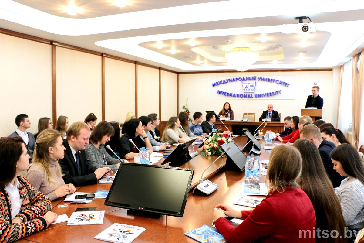 6 февраля утром мы посетили Международный университет «МИТСО». Встреча началась с вступительного слова проректора данного вуза, председателя Молодёжного Совета ФПБ Артёма Сергеевича Игнатенко. Далее слово было передано заместителю председателя ФПБ А.С. Микше. В конце встречи были вручены награды победителям народного фотоконкурса ФПБ «Радзiма».