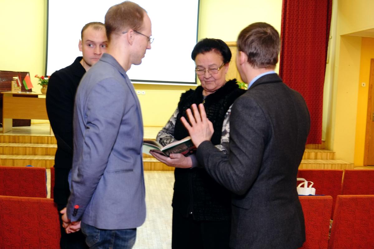 Ст. преп. М.Г. Королёв, В.Н. Голубев и ст. преп. кафедры ОЗЗ А.А. Герберг рассказали о том, как шла работа по подготовке настоящего издания, а также представили основные концепты книги. Представители дипломатического корпуса в своих выступлениях подчеркнули значимость научных исследований учёных Латвии и Беларуси в укреплении дружественных связей между нашими государствами и развитии «народной дипломатии». Председатель общества художников-белорусов Прибалтики «Маю гонар» Вячка Телеш поблагодарил весь авторский коллектив за книгу, благодаря которой любой читатель может познакомится с основными направлениями и результатами сотрудничества Латвии и Беларуси, латышей и белорусов. В дискуссионном ракурсе выступили представители Союза белорусов Латвии Валентина Пискунова и Елена Лазарева. В конце презентации гостей порадовал выступлением ансамбль «Надзея».