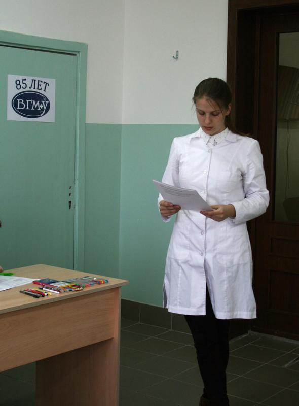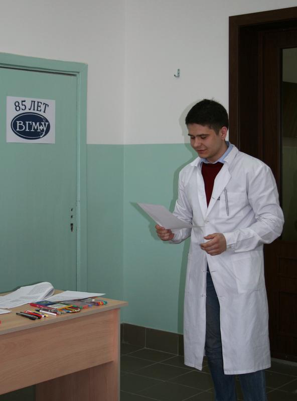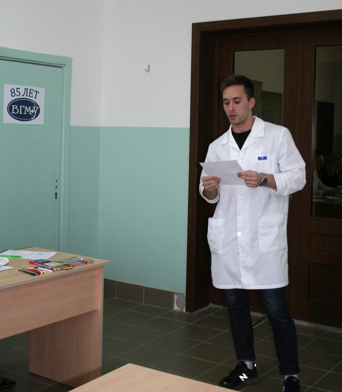 15 апреля 2019 года на кафедре патологической физиологии УО «ВГМУ» состоялся заключительный тур предметной олимпиады, приуроченной к 85-летию Витебского государственного ордена Дружбы народов медицинского университета. Всего в олимпиаде участвовали 38 студентов 3 курса лечебного факультета, 7 из которых вышли в финал. В заключительном туре приняли участие: студент 21 группы Борсук И.Д., студентка 9 группы Геращенко М.С., студентка 33 группы Гуляшко Е.В., студент 20 группы Денисенко Э.В., студентка 10 группы Ермоленко М.Н., студент 31 группы Ракицкий А.Ю. и студент 14 группы Ярошевич А.П.