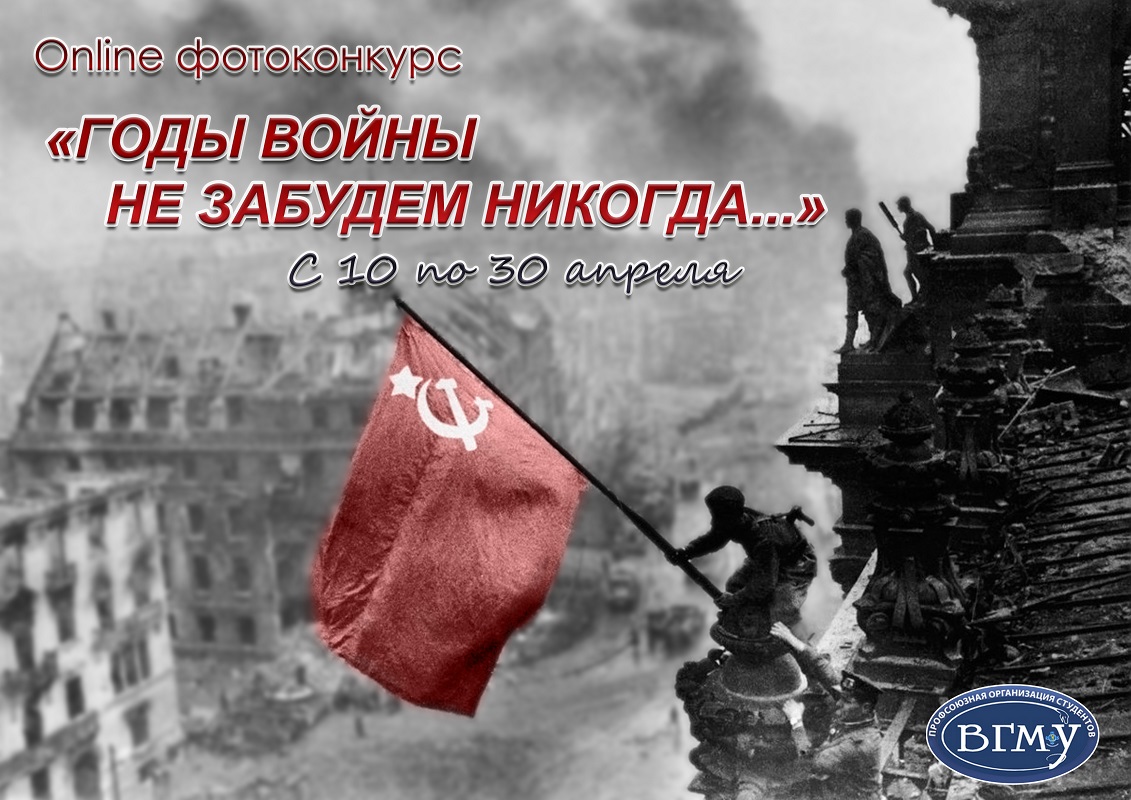 Уважаемые студенты! С 10 по 30 апреля в ВГМУ проводится online фотоконкурс "Годы войны не забудем никогда", посвященный 75-летию освобождения Республики Беларусь от немецко-фашистских захватчиков и Году малой родины.