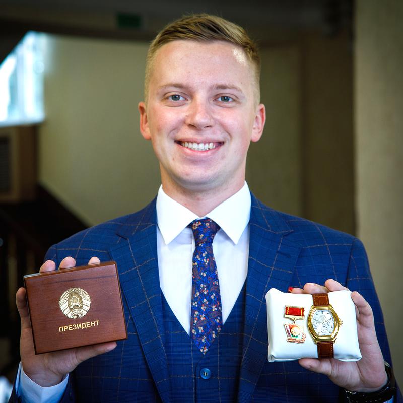 Среди 16 лучших студентов-выпускников оказался и наш Егор Веташков. Президент Республики Беларусь вручил каждому из них памятный знак и ценный подарок.