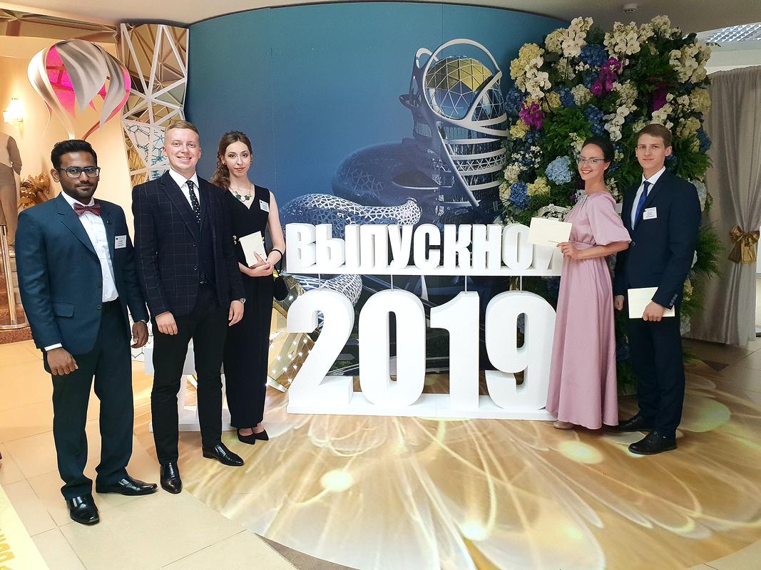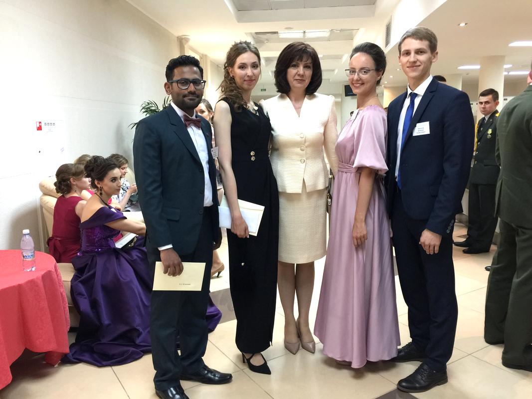 25 июня 2019 года в Минске в административном комплексе «Победителей,14» состоялся Республиканский бал выпускников учреждений высшего образования, на который была приглашена делегация ВГМУ во главе с ректором университета. В неё вошли пятеро наших студентов-выпускников: Терехов Евгений (фармацевтический факультет), Веташков Егор (лечебный факультет), Галинская Екатерина (лечебный факультет), Ходасевич Наталья (фармацевтический факультет) и Ксавиер Крисджит (факультет подготовки иностранных граждан).
