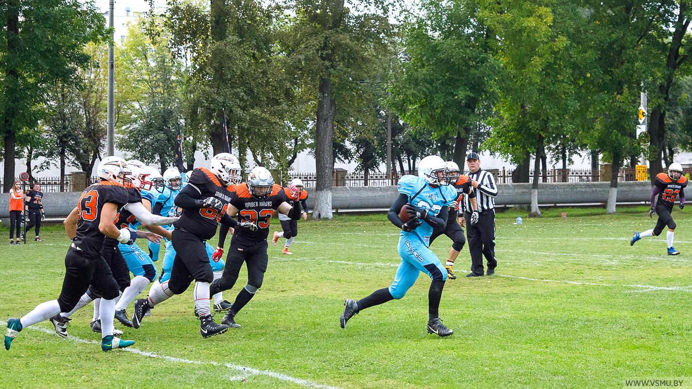 24 августа 2019 года в г. Витебске на стадионе СДЮСШОР «Комсомолец» состоялся очередной матч открытого чемпионата Республики Беларусь по американскому футболу между командами ВГМУ и «Янтарными ястребами» г. Калининград.