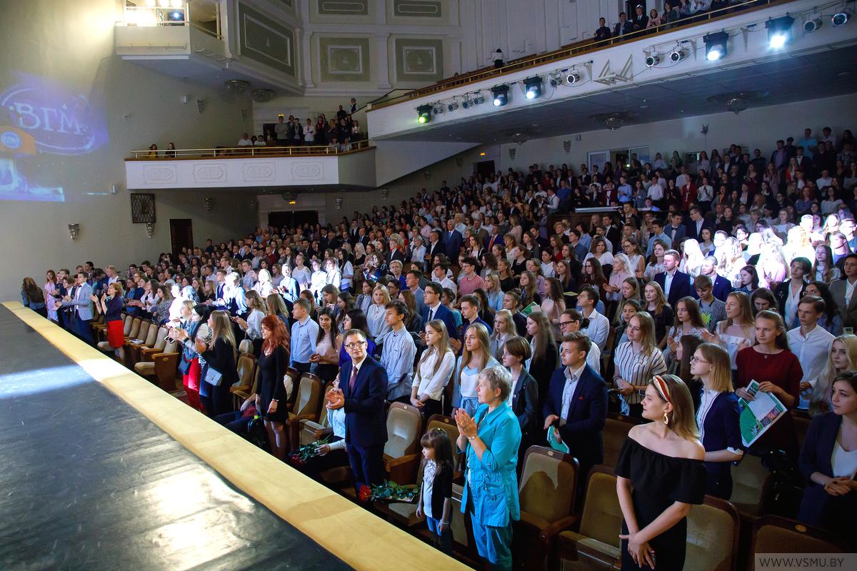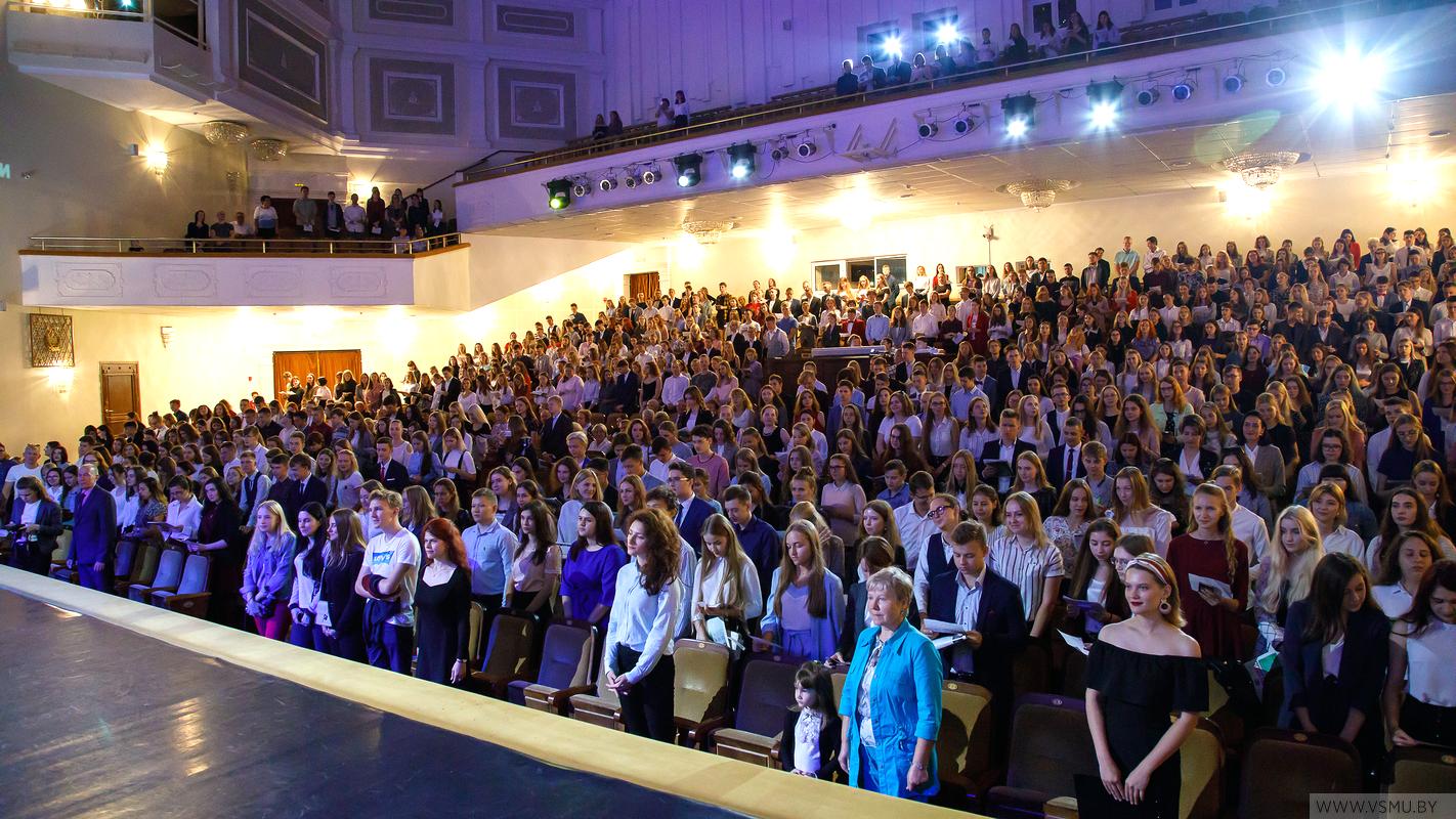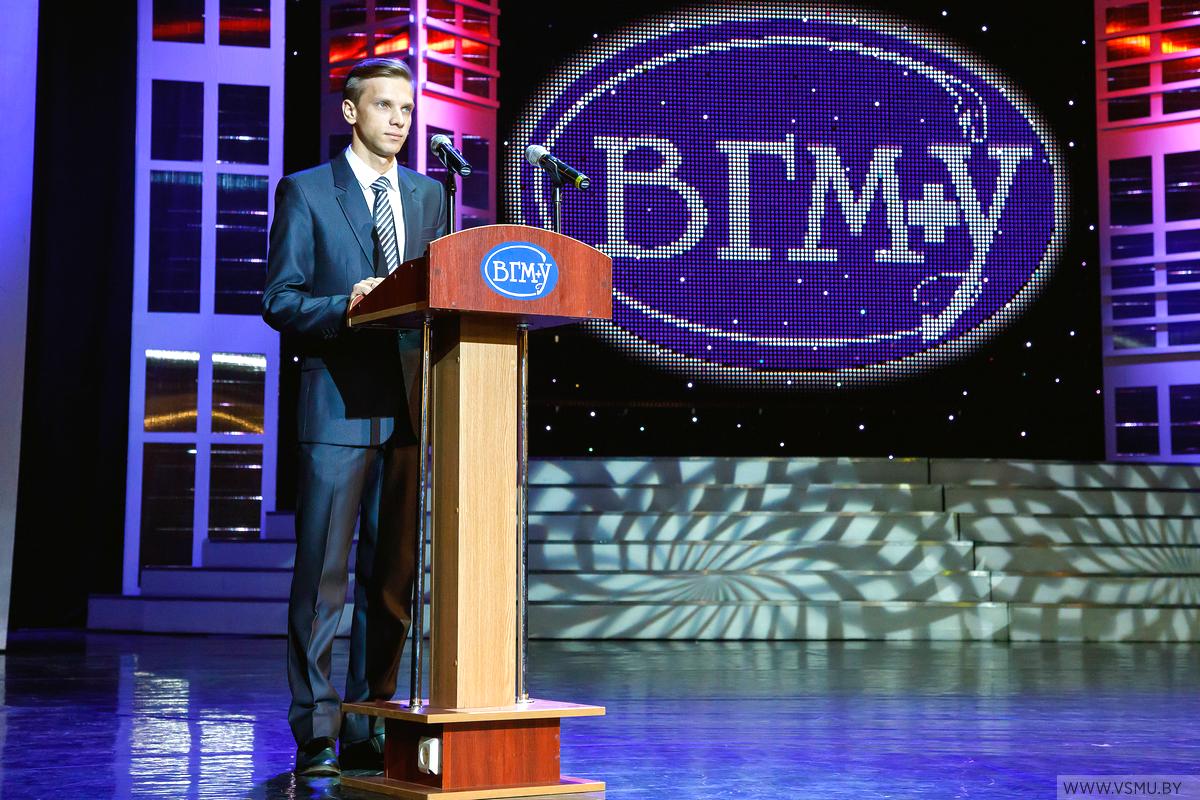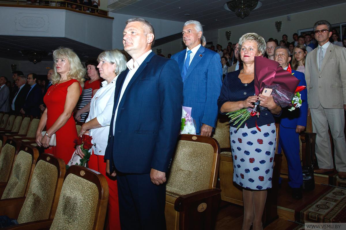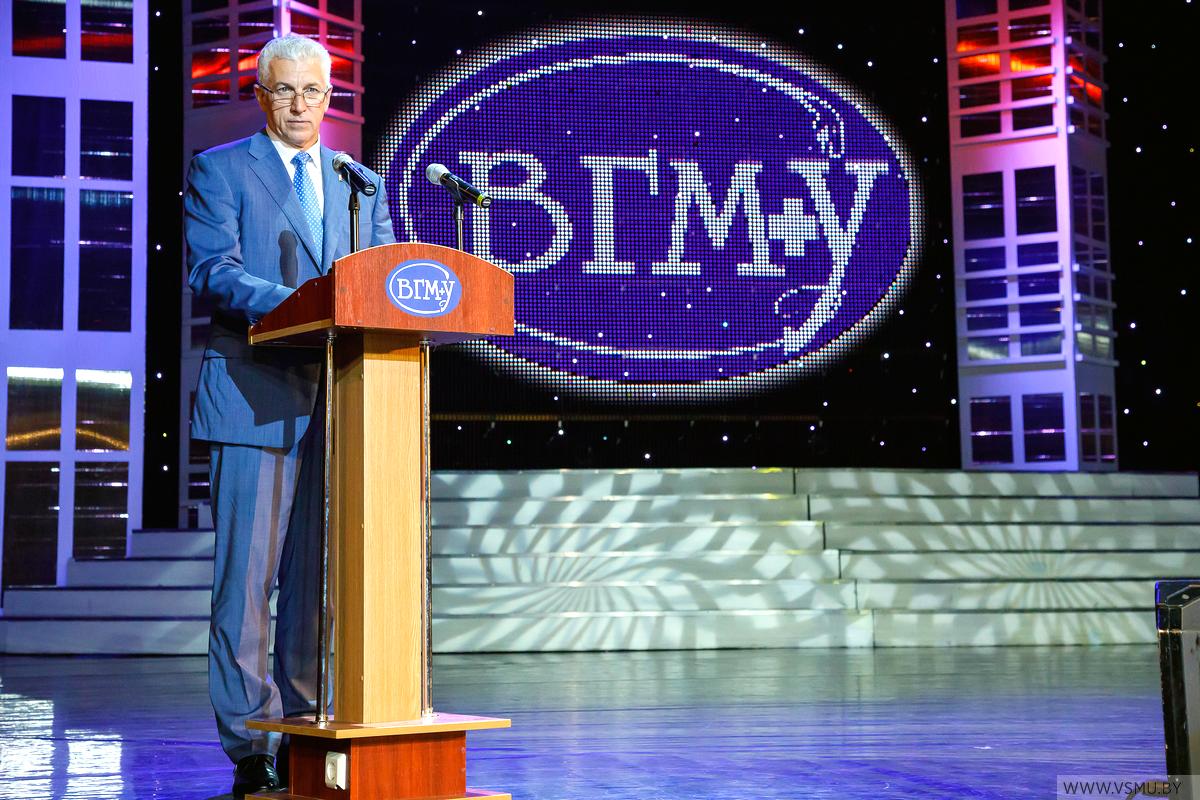 1 сентября в концертном зале «Витебск» состоялись торжественный Совет университета и концертная программа, посвящённые Дню знаний. По поручению министра здравоохранения нашей страны Караника Владимира Степановича первокурсников поздравила начальник управления кадровой политики, учреждений образования Министерства здравоохранения Республики Беларусь Ольга Владимировна Маршалко. Затем перед собравшимися выступили ректор университета профессор Анатолий Тадеушевич Щастный, наши известные учёные-преподаватели доктора медицинских наук Валерий Михайлович Семёнов, Александр Ильич Жебентяев и Иван Юрьевич Карпук. От лица родителей первокурсников слово взял Виктор Валентинович Редненко, начальник центра практической подготовки и симуляционного обучения. С приветственным словом к собравшимся обратилась секретарь ПО ОО «БРСМ» ВГМУ Карина Бартошевич, студентка 5-го курса лечебного факультета.