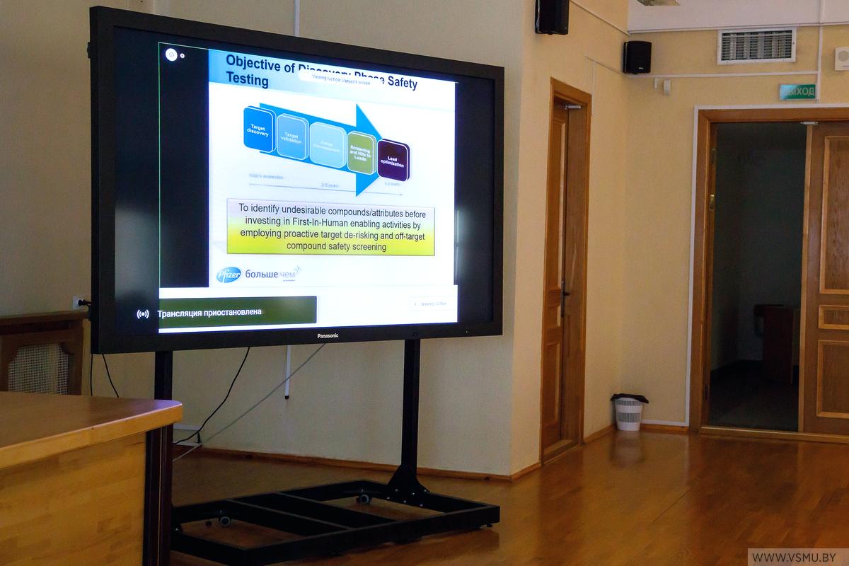 С 30 сентября по 04 октября 2019 г. в конференц-зале морфологического корпуса университета состоялся очередной, уже ставший традиционным, образовательный модуль (вебинар), организованный в рамках трехстороннего договора между ФГБОУ ВО Санкт-Петербургским государственным химико-фармацевтическим университетом Минздрава России, учреждением образования «Витебский государственный ордена Дружбы народов медицинский университет» и компанией Pfizer и образовательного проекта Санкт-Петербургского государственного химико-фармацевтического университета «Больше, чем образование». Тема вебинара – « От идеи до пациента ».