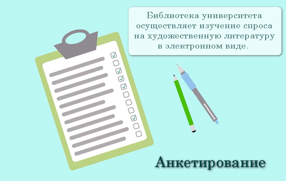 Библиотека университета осуществляет изучение спроса на художественную литературу в электронном виде. Просим вас пройти анкетирование любым удобным способом: