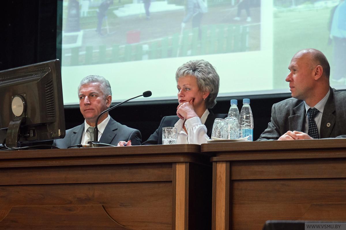 В состав президиума были избраны ректор университета доктор мед. наук, профессор Щастный Анатолий Тадеушевич, проректор по воспитательной и идеологической работе Ольга Аркадьевна Сыродоева, председатель Витебского областного комитета сотрудников здравоохранения БПРЗ Мужиченко Владислав Анатольевич, председатель профкома студентов ВГМУ Александр Михайлович Мясоедов и председатель профкома сотрудников ВГМУ Алексей Константинович Погоцкий.
