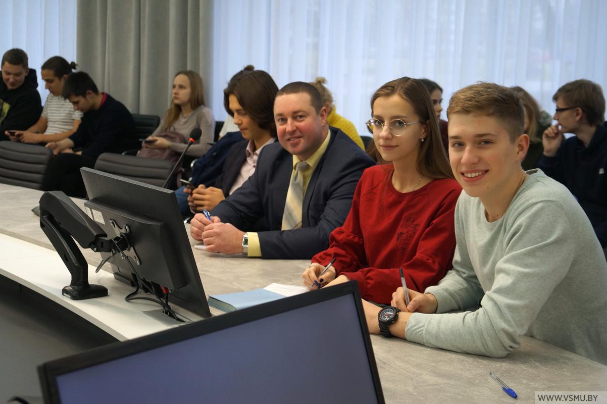 Далее мы обсудили 2 главных вопроса: какие изменения необходимо внести в структуру будущего кейса и каким должен быть баннер. Смоляне высказали много интересных вариантов. Не обошлось и без комментариев куратора рабочей группы Витебского государственного медицинского университета – председателя профкома студентов Александра Михайловича Мясоедова. Он предложил свои идеи и видение данного проекта.