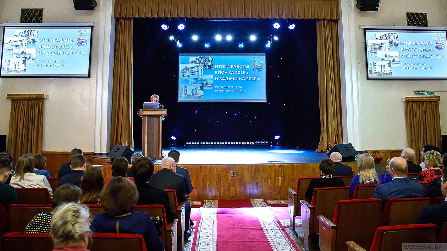 27 февраля 2020 года в актовом зале ВГМУ прошло собрание, посвящённое итогам работы ВГМУ за 2019 год и задачам на 2020 год. После доклада ректора университета профессора А.Т. Щастного (с содержанием доклада можно ознакомиться в презентации) состоялась церемония награждения студентов и сотрудников университета, и были названы победители в номинациях: