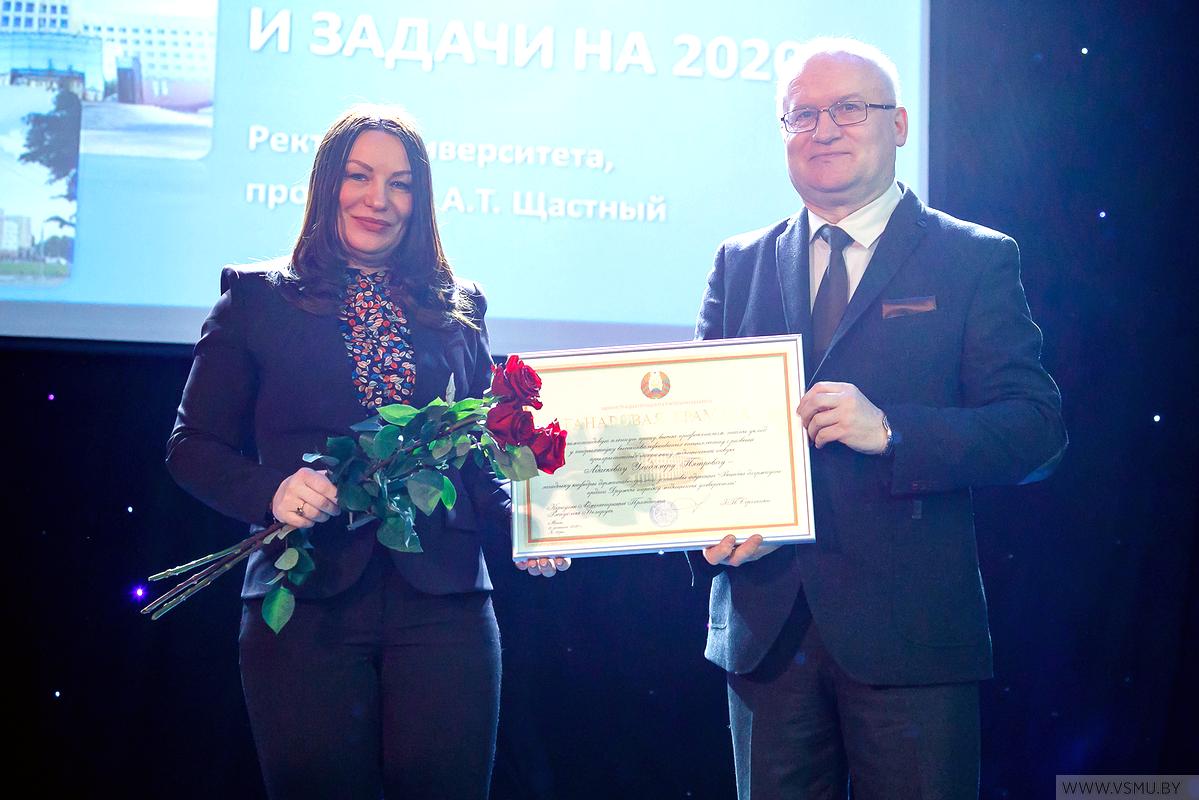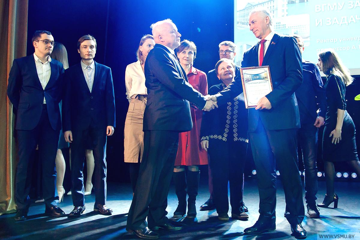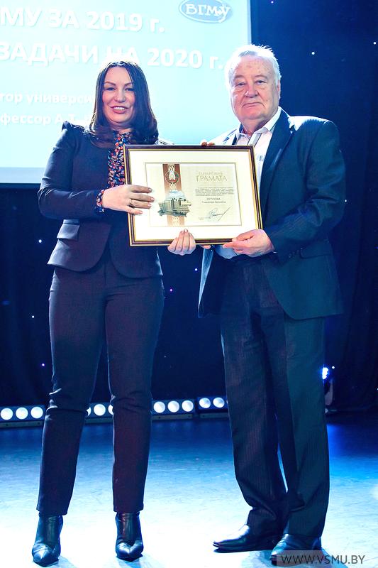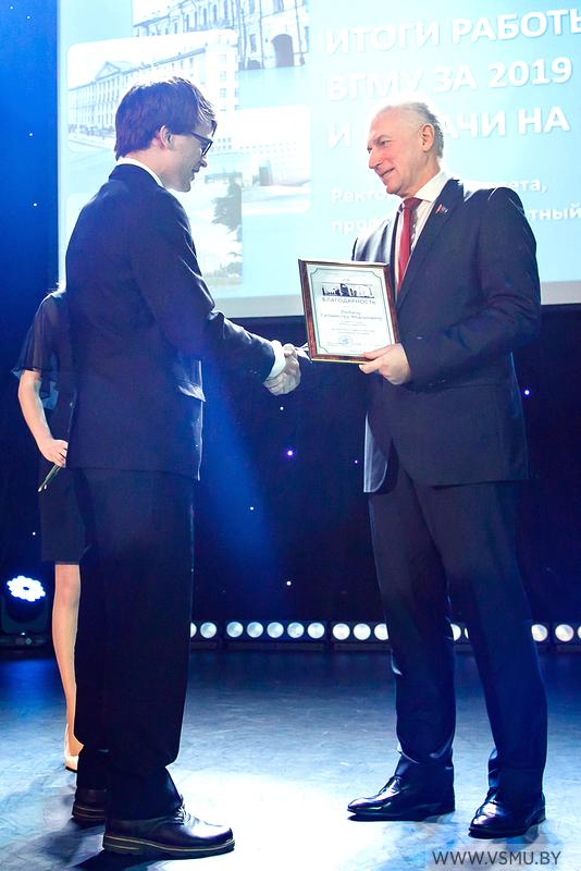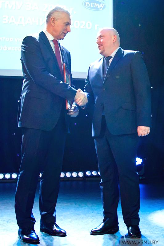 За выполнение большого объёма работ и подготовки документов для открытия новых специальностей II ступени высшего образования (магистратуры), подтверждения государственной аккредитации университета на соответствие заявленному виду и по специальностям, а также за организацию разработки образовательного стандарта и типового учебного плана по специальности 1-79 80 30 «Фармация», организацию Международной научно-практической конференции «Медицинское образование XXI века: разработка модели «Университет 3.0» и по итогам 2019 года признан победителем в номинации «Лучшее структурное подразделение» Витебского государственного ордена Дружбы народов медицинского университета учебно-методический отдел.