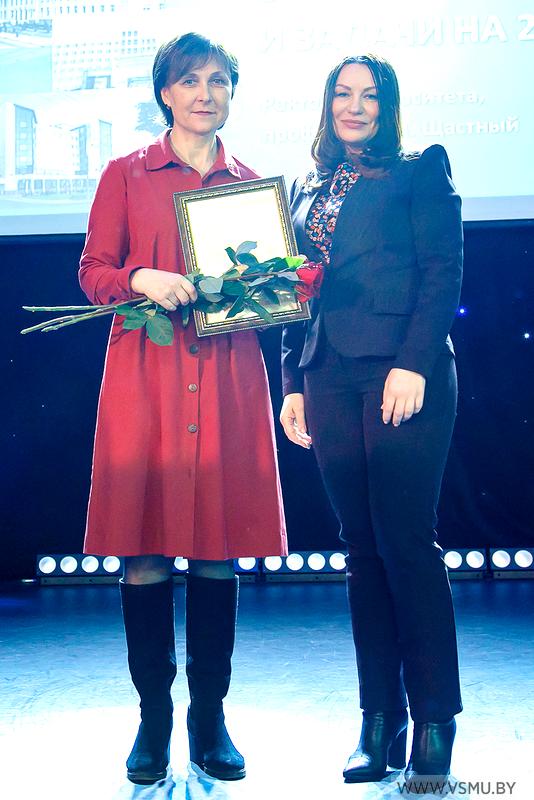 За большой вклад в развитие практического здравоохранения и науку, разработку приоритетных направлений в инфектологии, профессионализм и подготовку высококвалифицированных кадров признана победителем в номинации «Кафедра 2019 года» Витебского государственного ордена Дружбы народов медицинского университета кафедра инфекционных болезней с курсом ФПК и ПК.