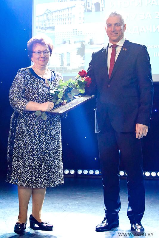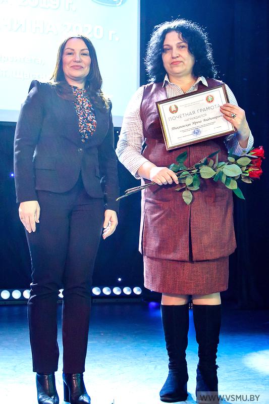 За многолетнюю плодотворную работу, высокий профессионализм, значительный личный вклад в развитие медицинской науки Почётной грамотой Министерства здравоохранения Республики Беларусь награждена Тихоновская Ирина Владимировна, доцент кафедры дерматовенерологии.
