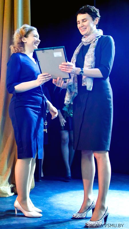 За победу в конкурсе молодых преподавателей ВГМУ, активное участие в мероприятиях, проведённых Школой молодого преподавателя, научных и учебно – методических конференциях и семинарах, добросовестный труд признана победителем в номинации «Лучший молодой преподаватель» Гимро Ольга Георгиевна, старший преподаватель кафедры военной подготовки и экстремальной медицины, полковник медицинской службы.