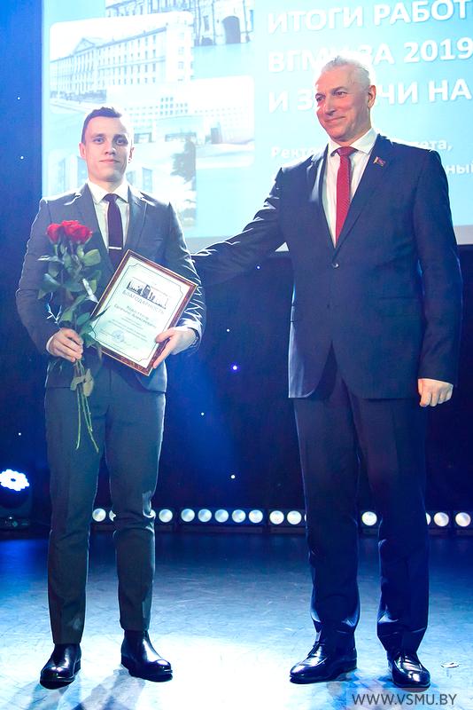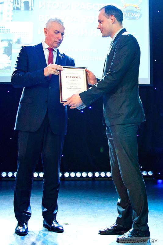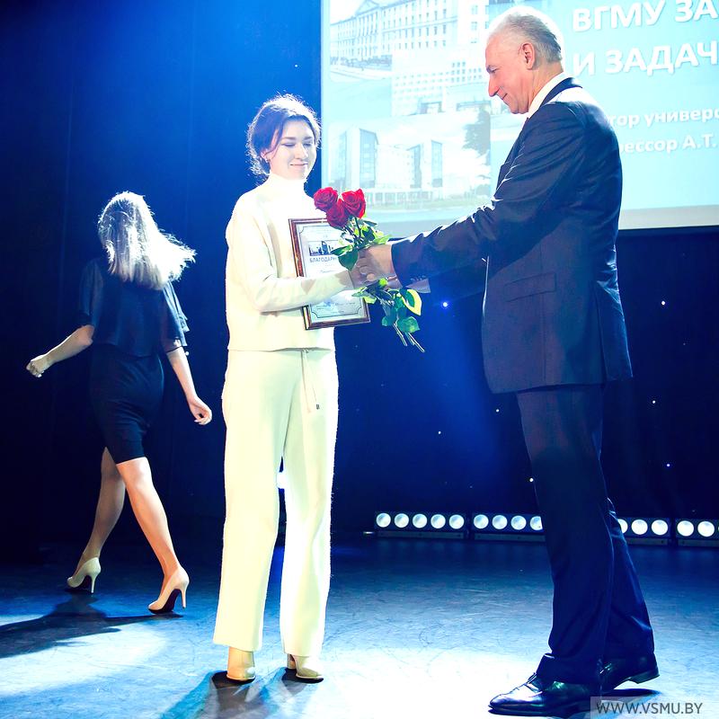 За отличную учёбу и высокие достижения в студенческой науке благодарность выражена: Ходасевичу Евгению Алексеевичу, студенту 6 курса лечебного факультета; Перепелице Валентине Александровне, студентке 4 курса лечебного факультета.