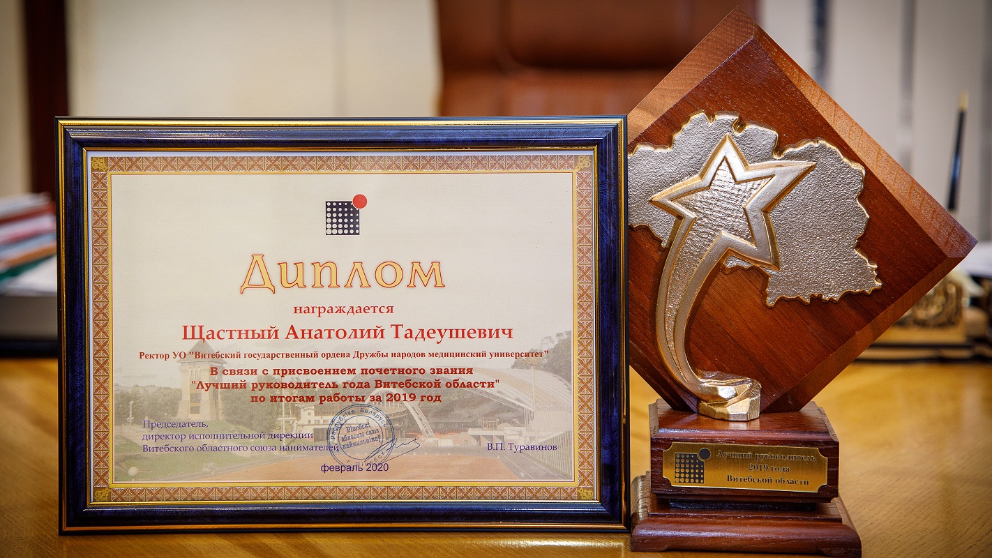 20 марта 2020 года ректору ВГМУ профессору А.Т. Щастному были вручены диплом и памятный знак «Лучшему руководителю года Витебской области» по итогам работы за 2019 год. Награду вручал председатель исполнительной дирекции Витебского областного союза нанимателей В.П. Туравинов. Поздравляем Анатолия Тадеушевича и весь коллектив сотрудников ВГМУ с заслуженной наградой!