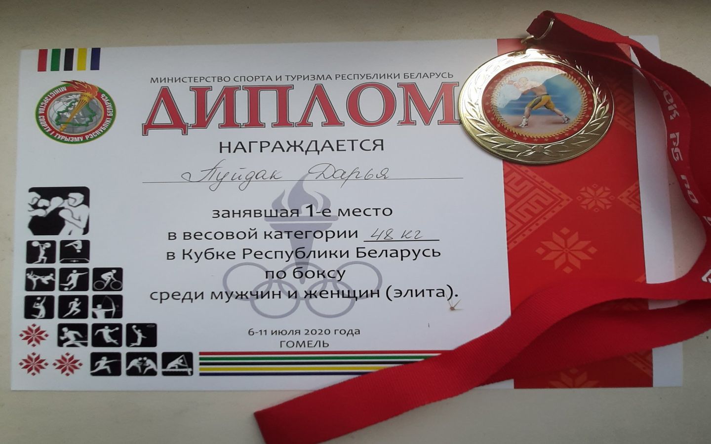 В Кубке Республики Беларусь по боксу, который проводился с 6 по 11июля 2020 года в г. Гомеле принимали участие три наших студента и завоевали две медали. Пуйдак Дарья (5 ЛФ) заняла первое место, Клюйкова Ярослава (3 ЛФ) стала бронзовым призёром Республиканских соревнований. Калита Артём (3 ФФ) остановился на одной ступеньке ниже пьедестала (4-е место), что безусловно также является хорошим результатом учитывая высокий уровень Кубка Республики.